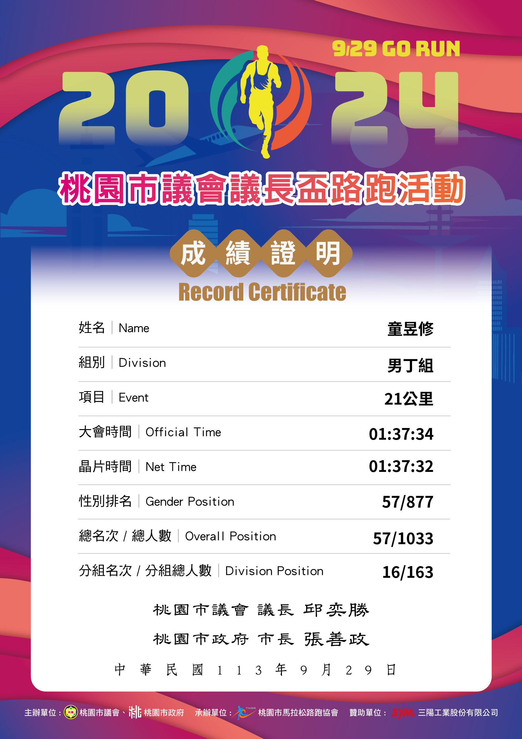 大會成績 Official Time