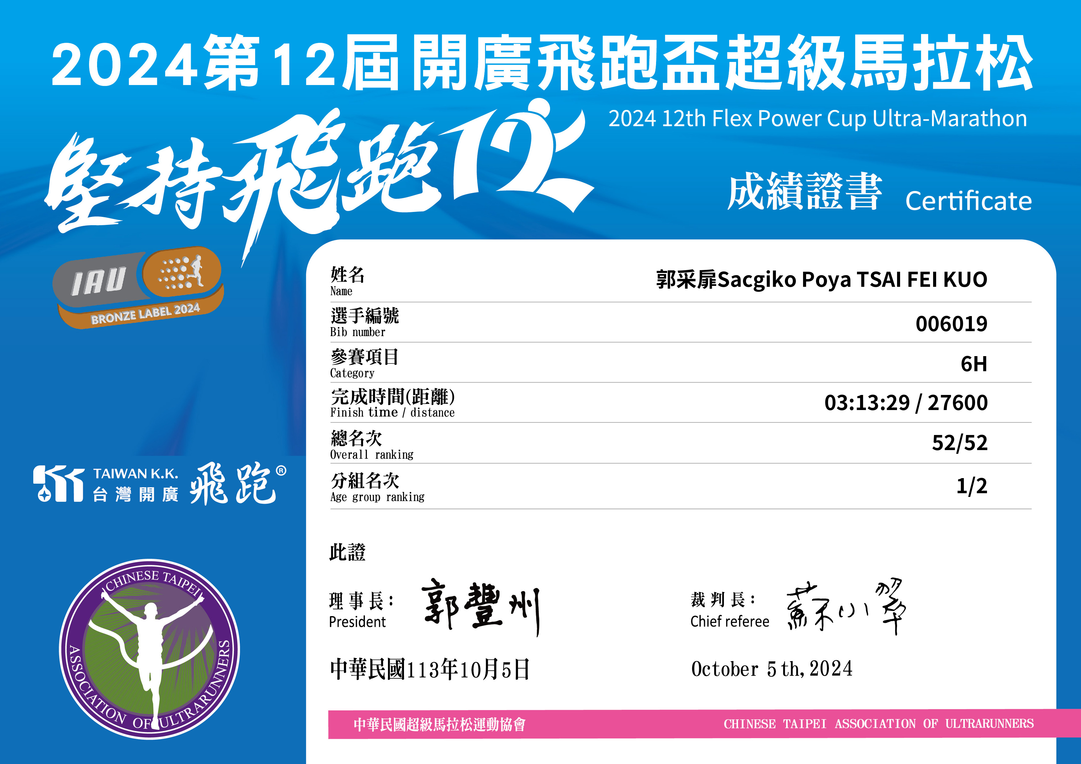 - 即時成績排名僅供參考,正式成績排名應以主辦單位公告為準。