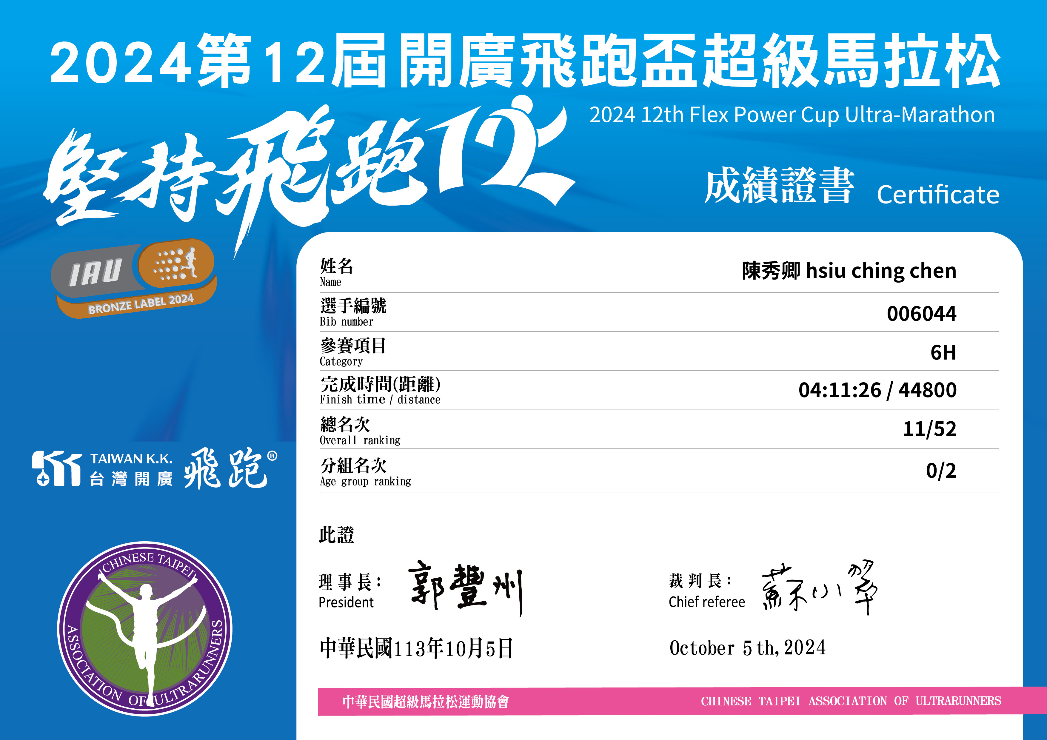 - 即時成績排名僅供參考,正式成績排名應以主辦單位公告為準。