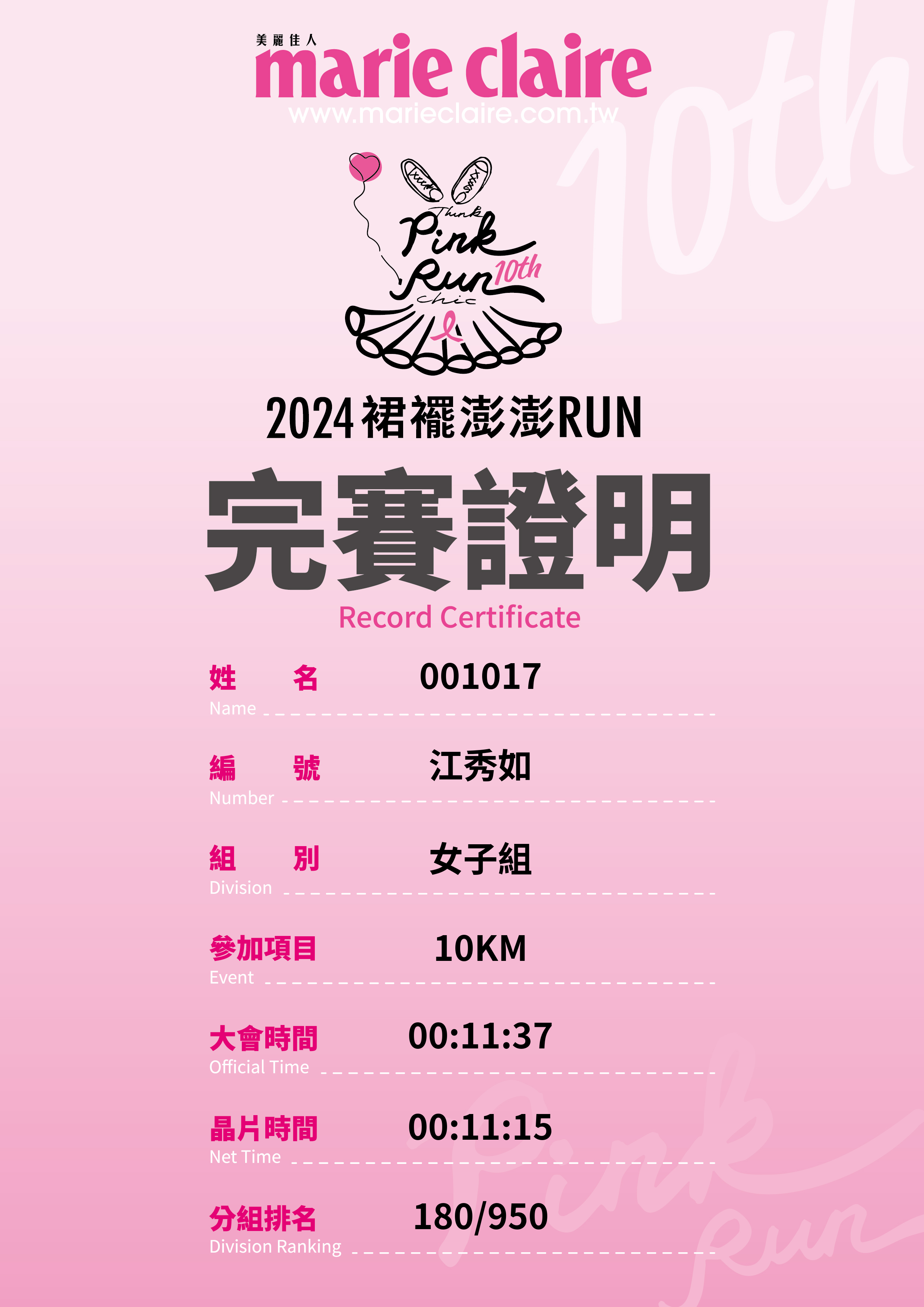 大會成績 Official Time