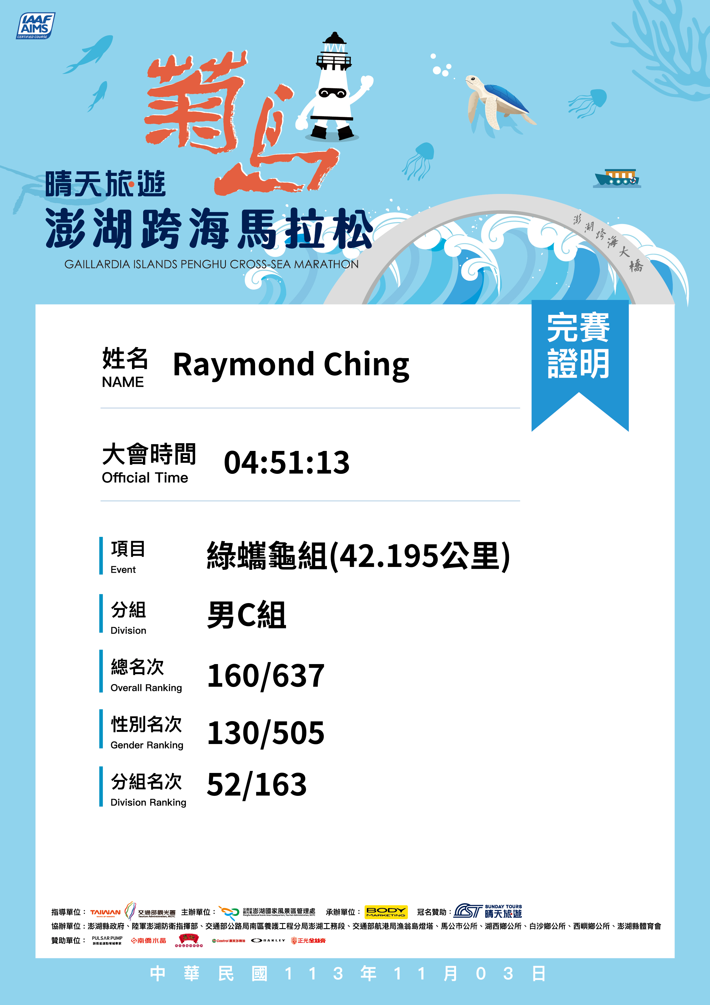 大會成績 Official Time