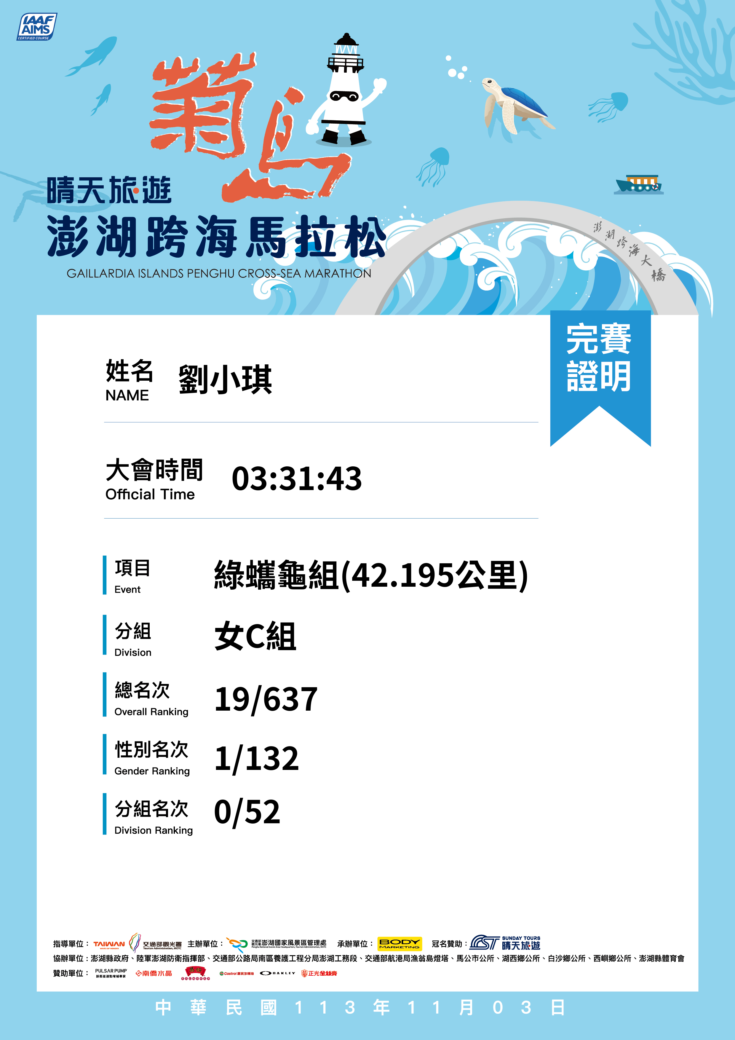 大會成績 Official Time