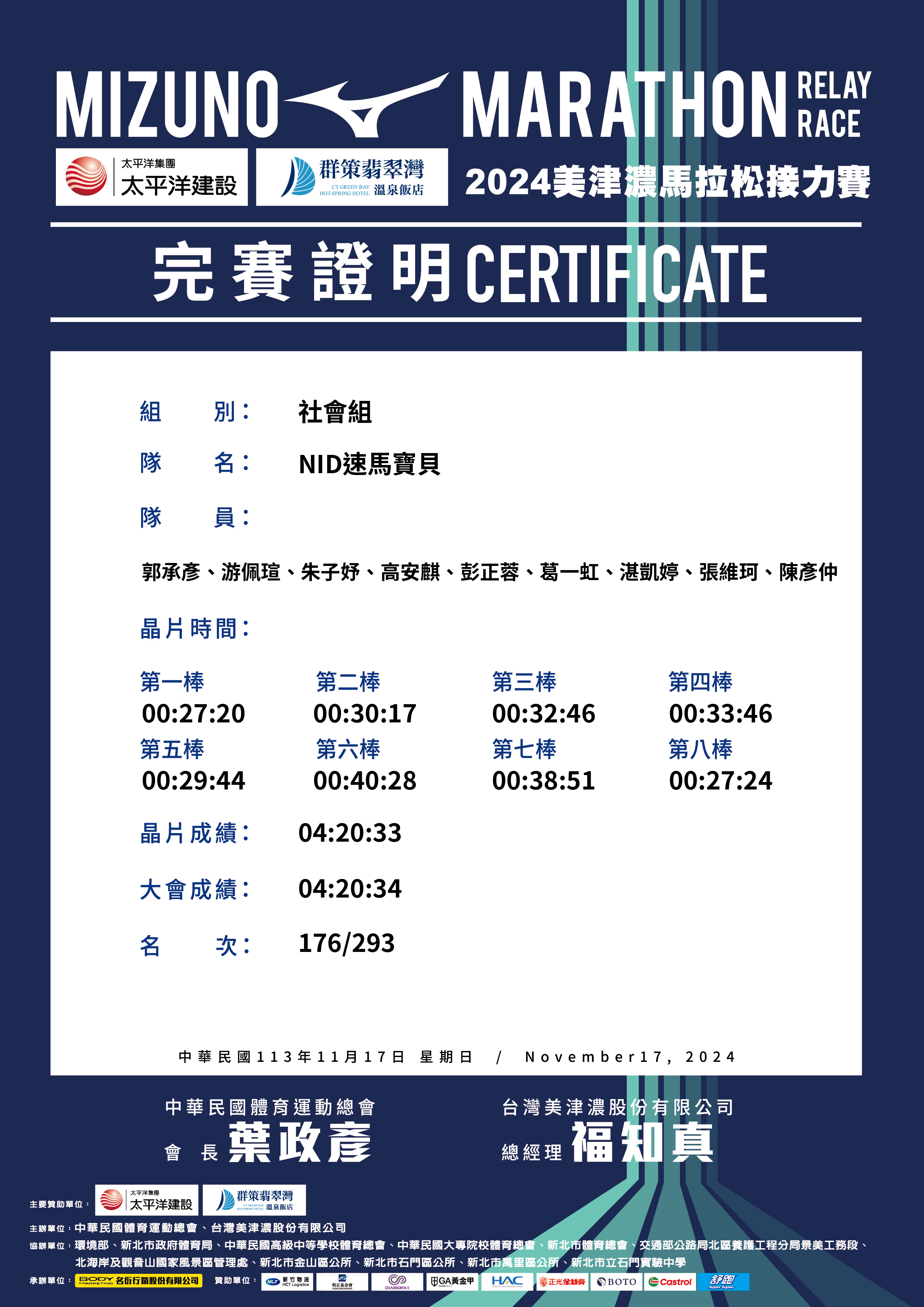 - 即時成績排名僅供參考,正式成績排名應以主辦單位公告為準。