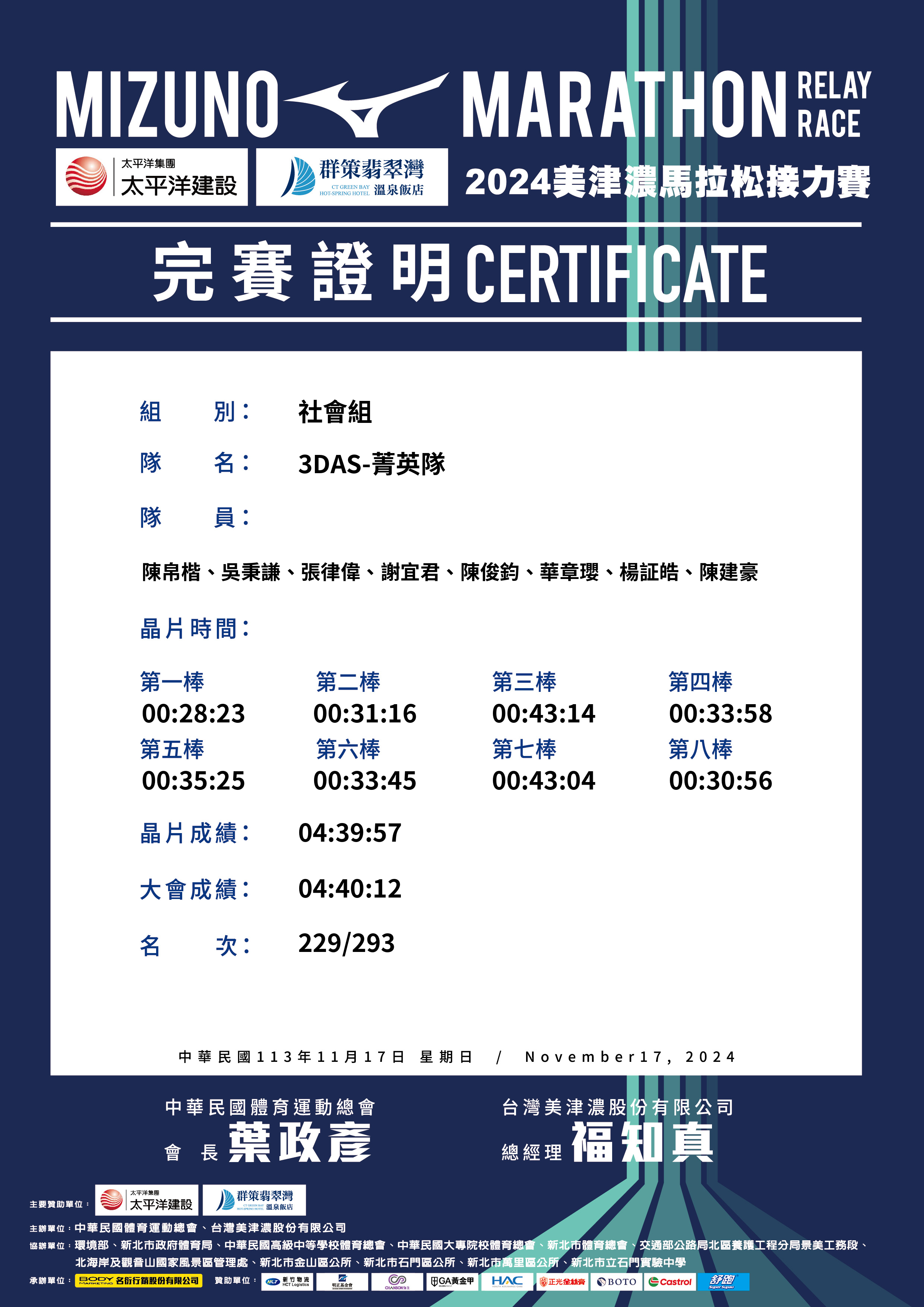 - 即時成績排名僅供參考,正式成績排名應以主辦單位公告為準。