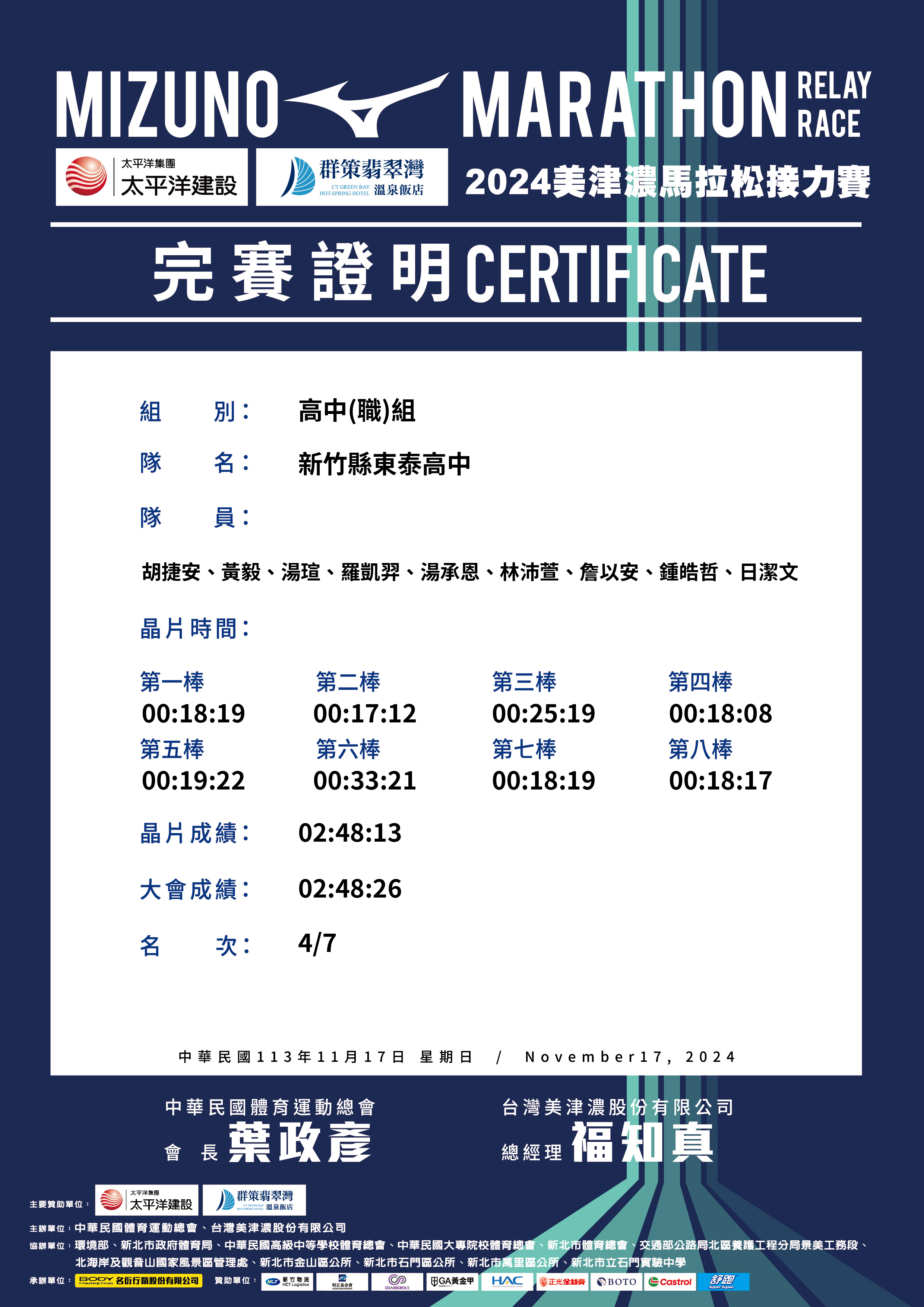 - 即時成績排名僅供參考,正式成績排名應以主辦單位公告為準。