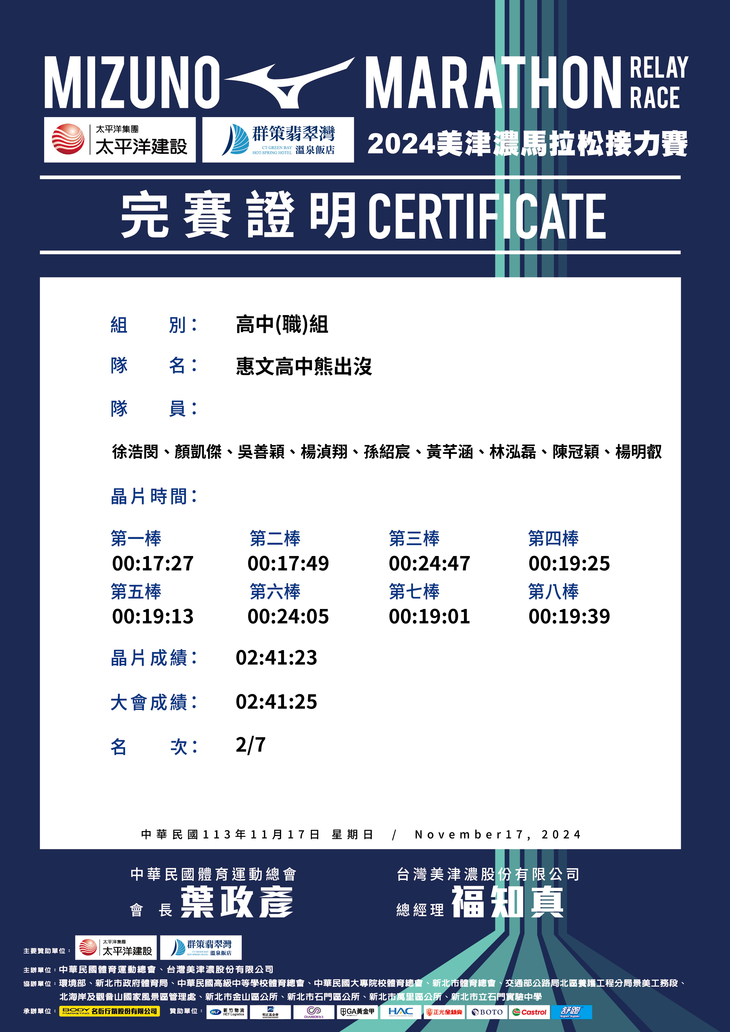 - 即時成績排名僅供參考,正式成績排名應以主辦單位公告為準。