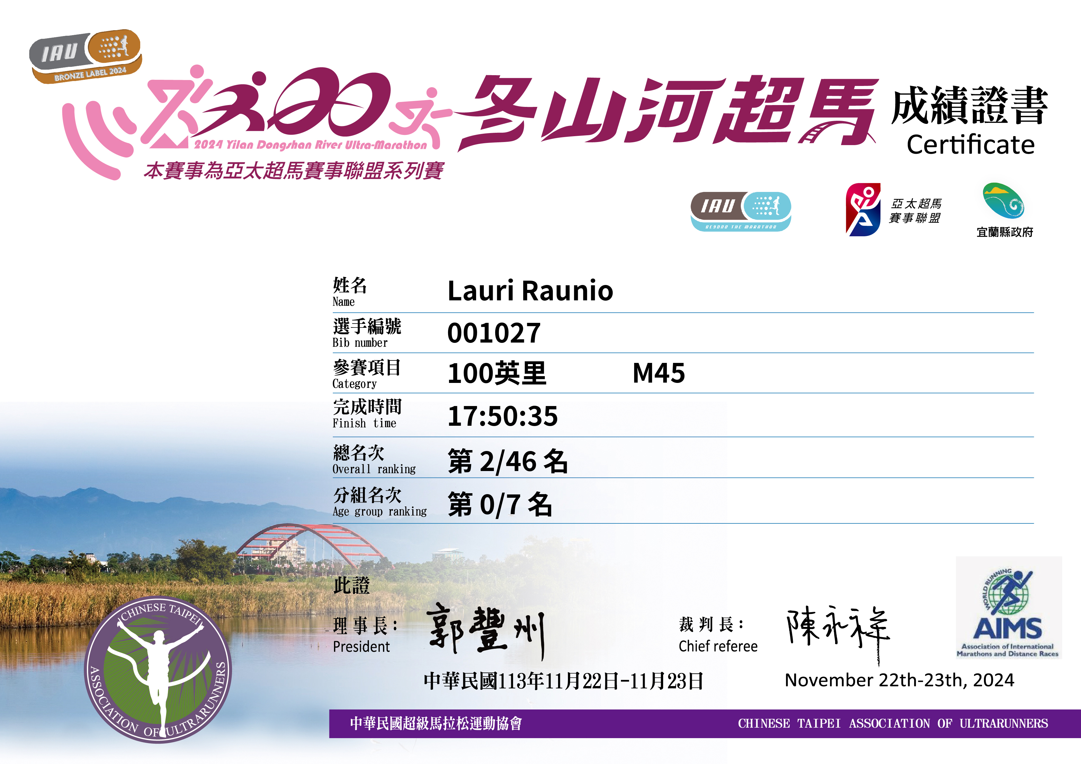 大會成績 Official Time