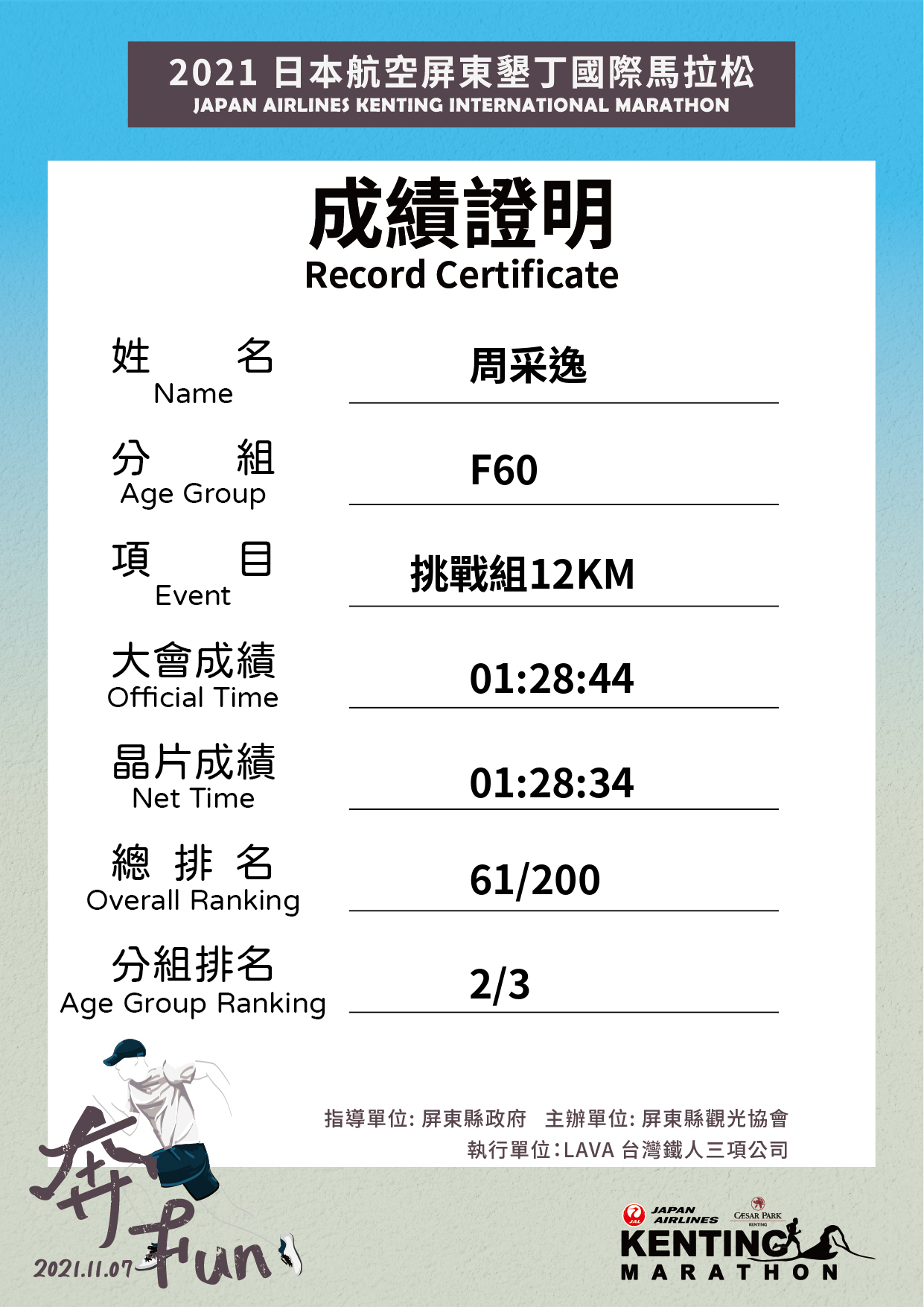 大會成績 Official Time