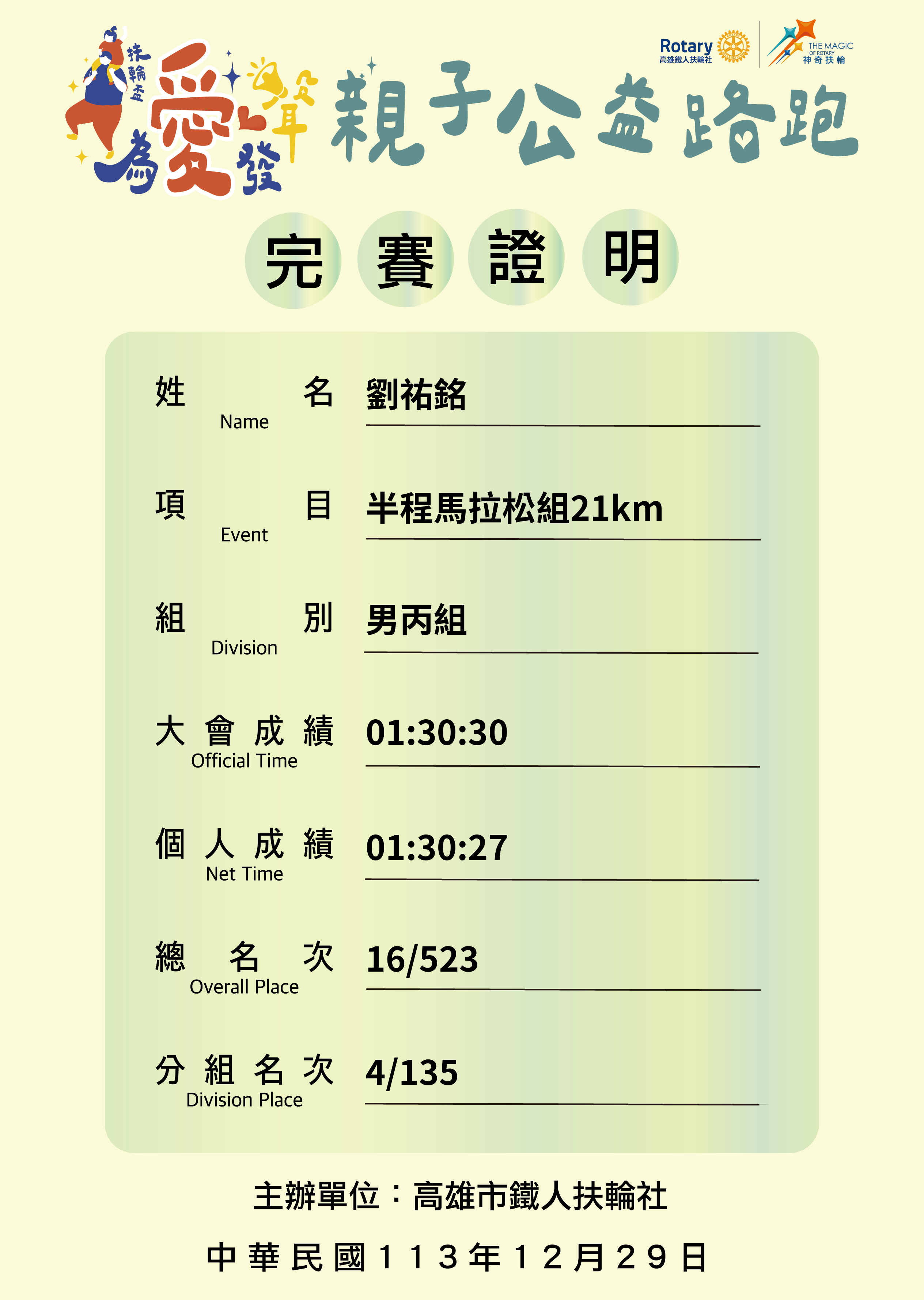 大會成績 Official Time