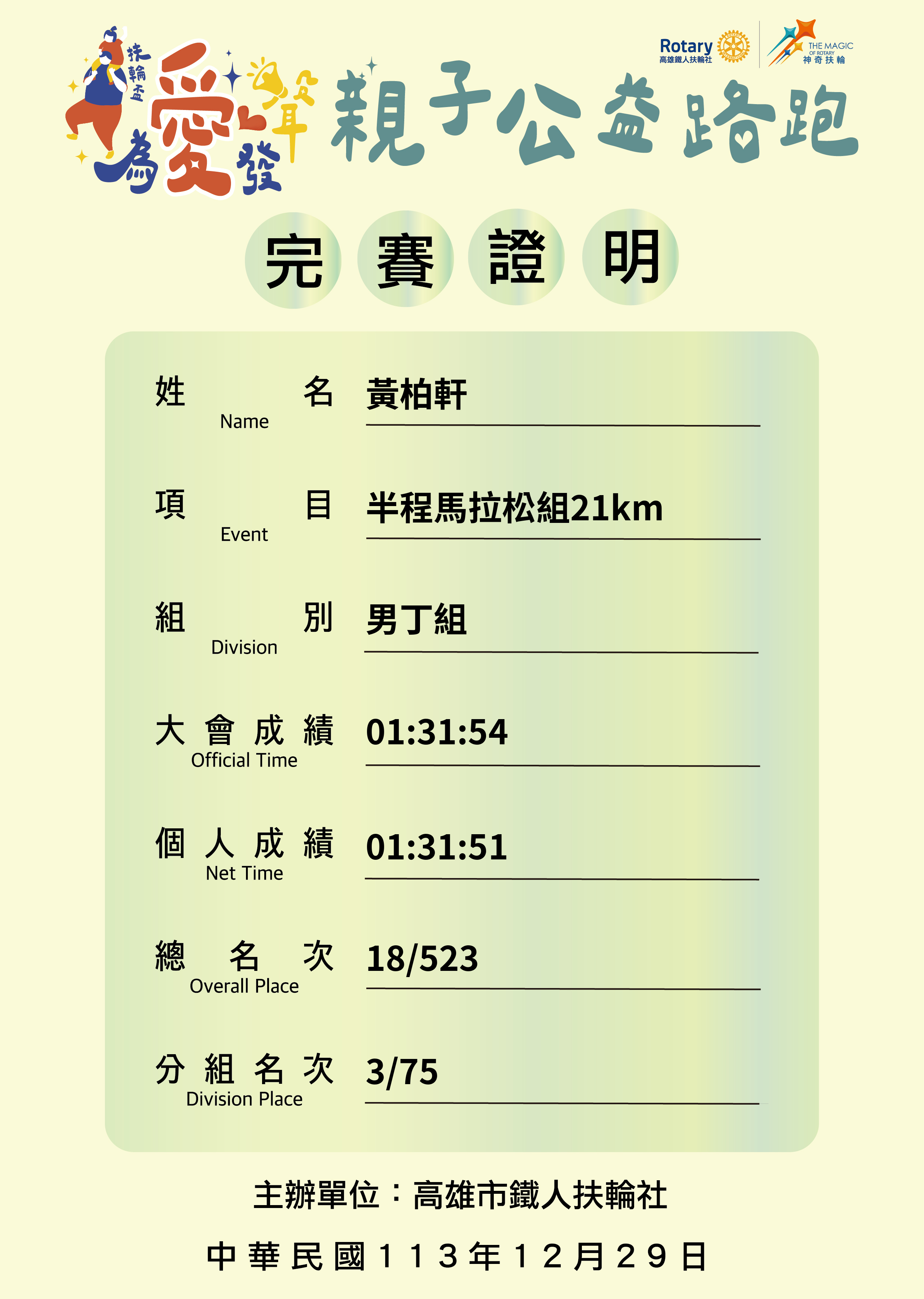 大會成績 Official Time