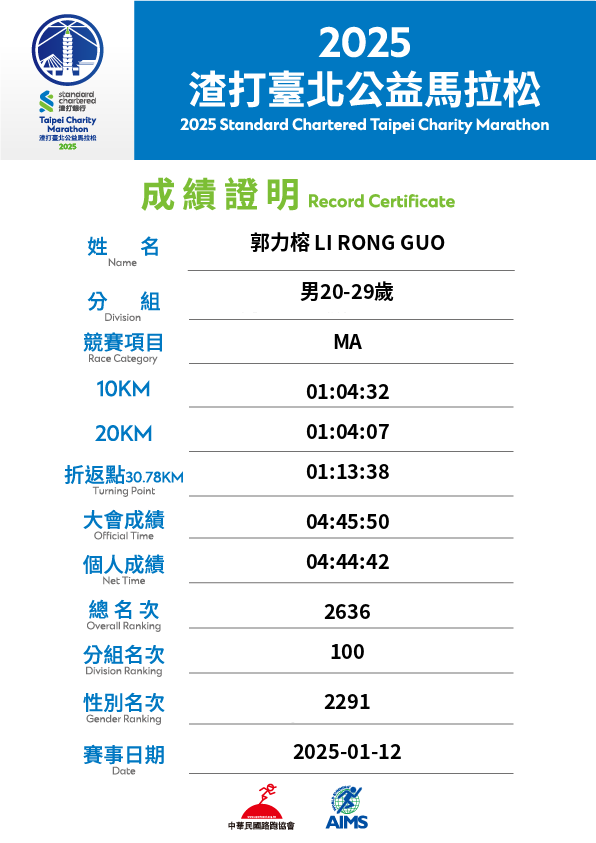 大會成績 Official Time