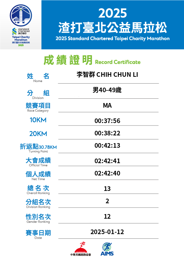 大會成績 Official Time