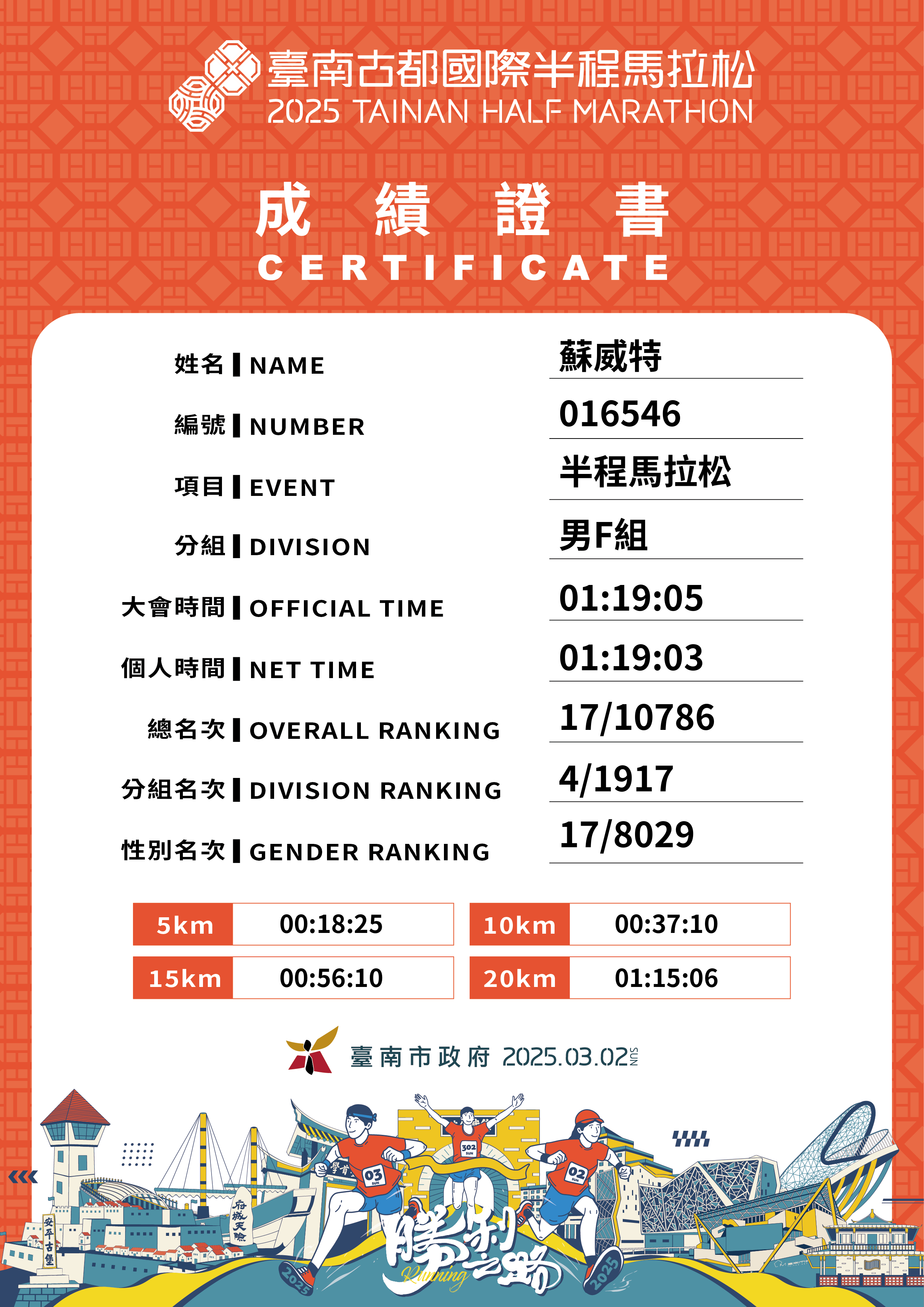 大會成績 Official Time