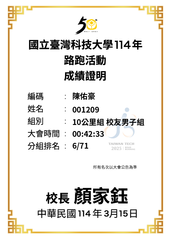 大會成績 Official Time