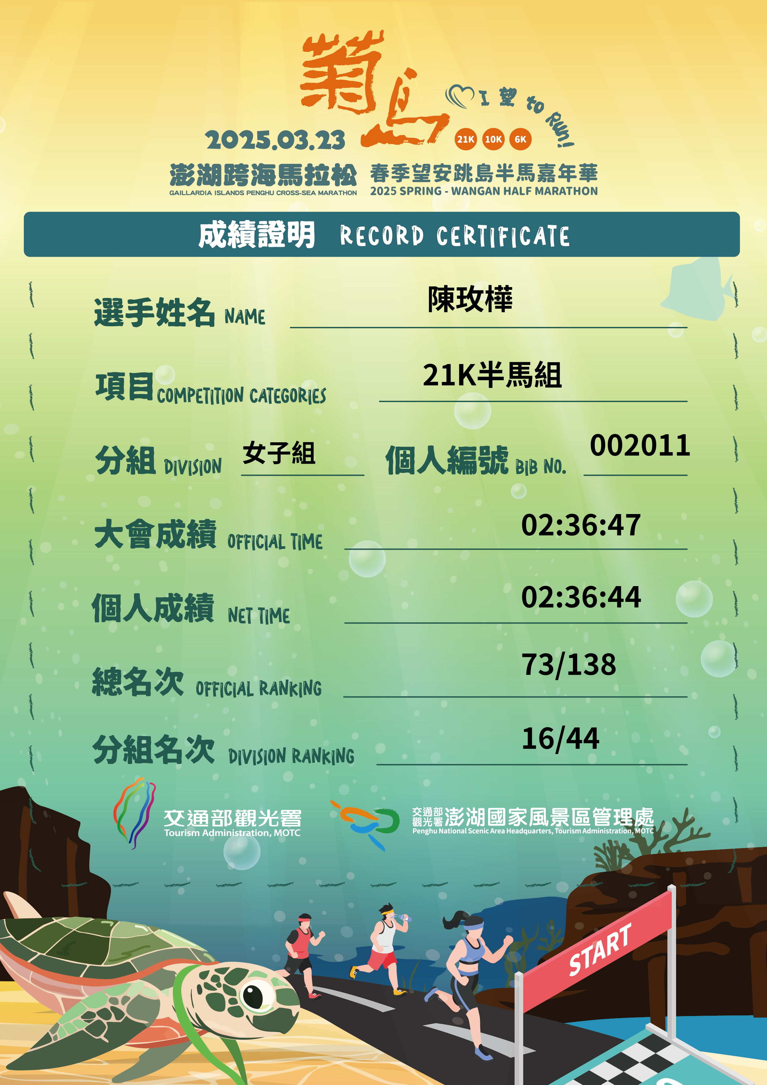 大會成績 Official Time