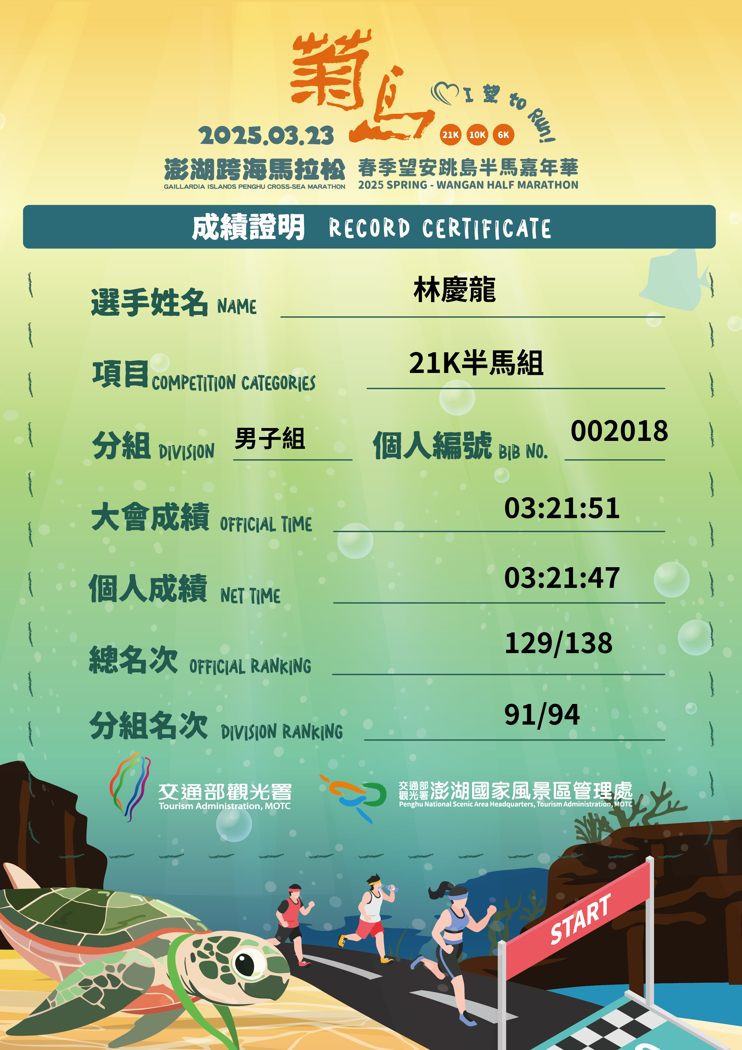 大會成績 Official Time