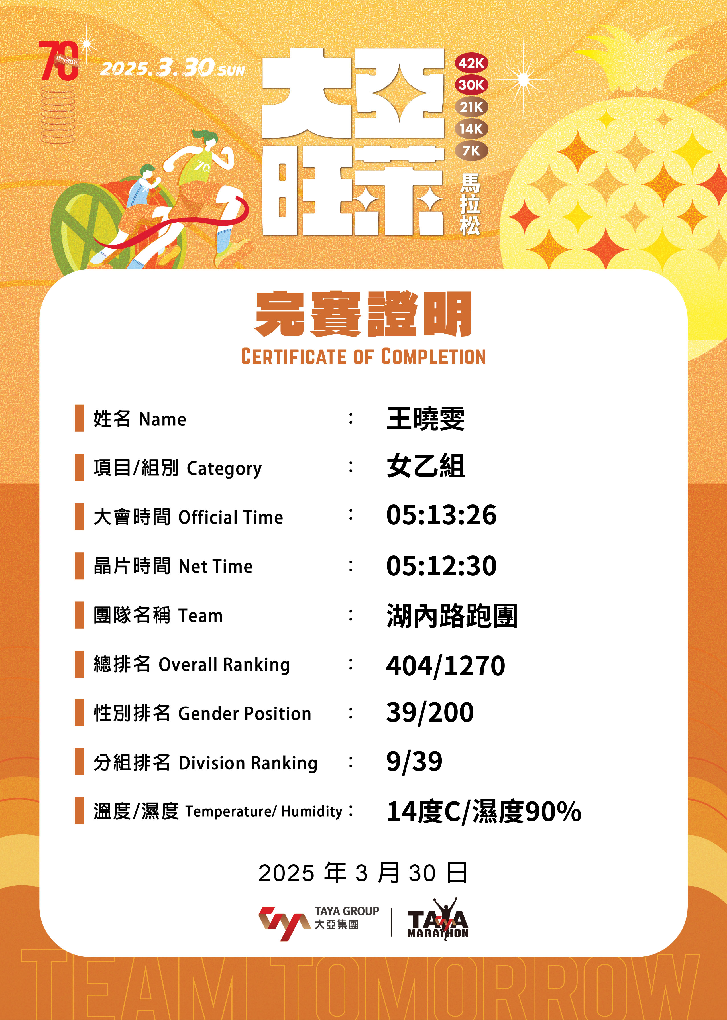 大會成績 Official Time
