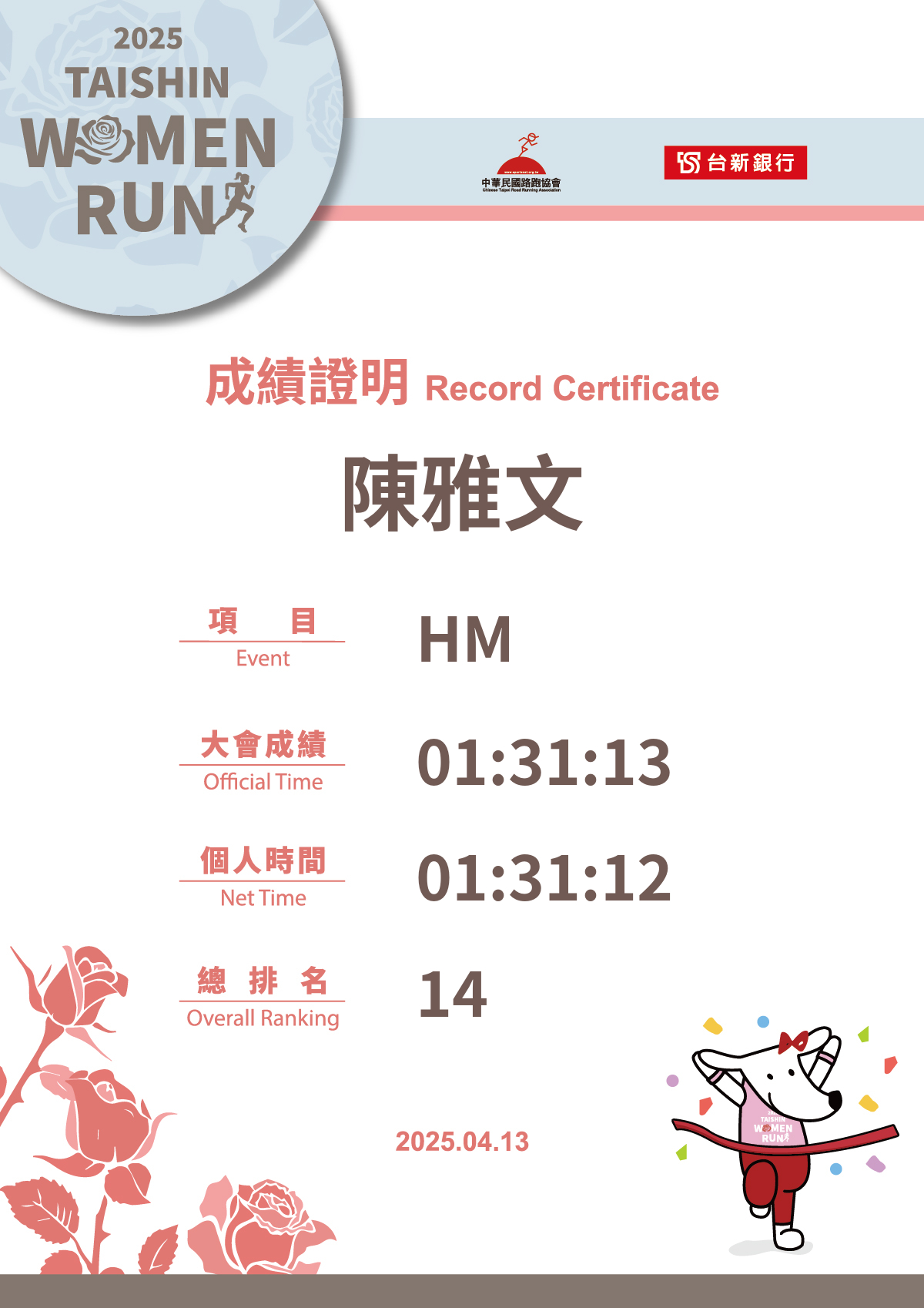 大會成績 Official Time