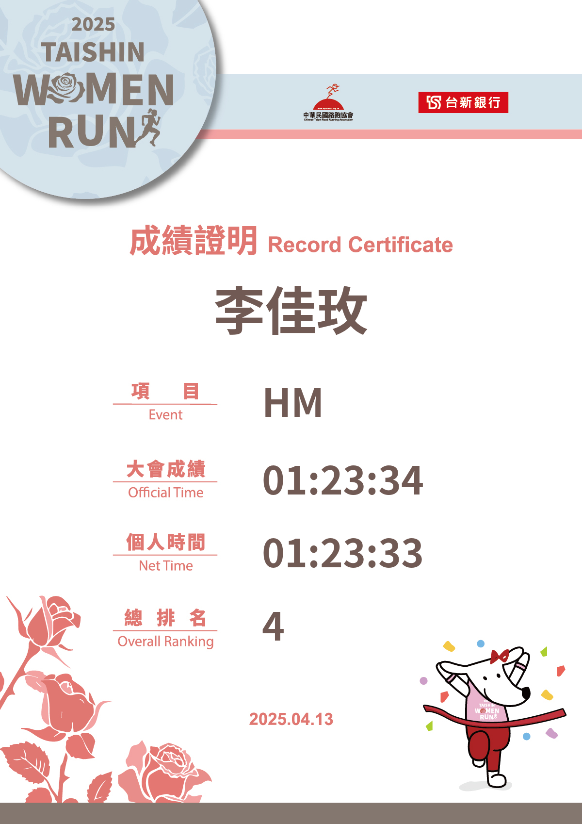 大會成績 Official Time