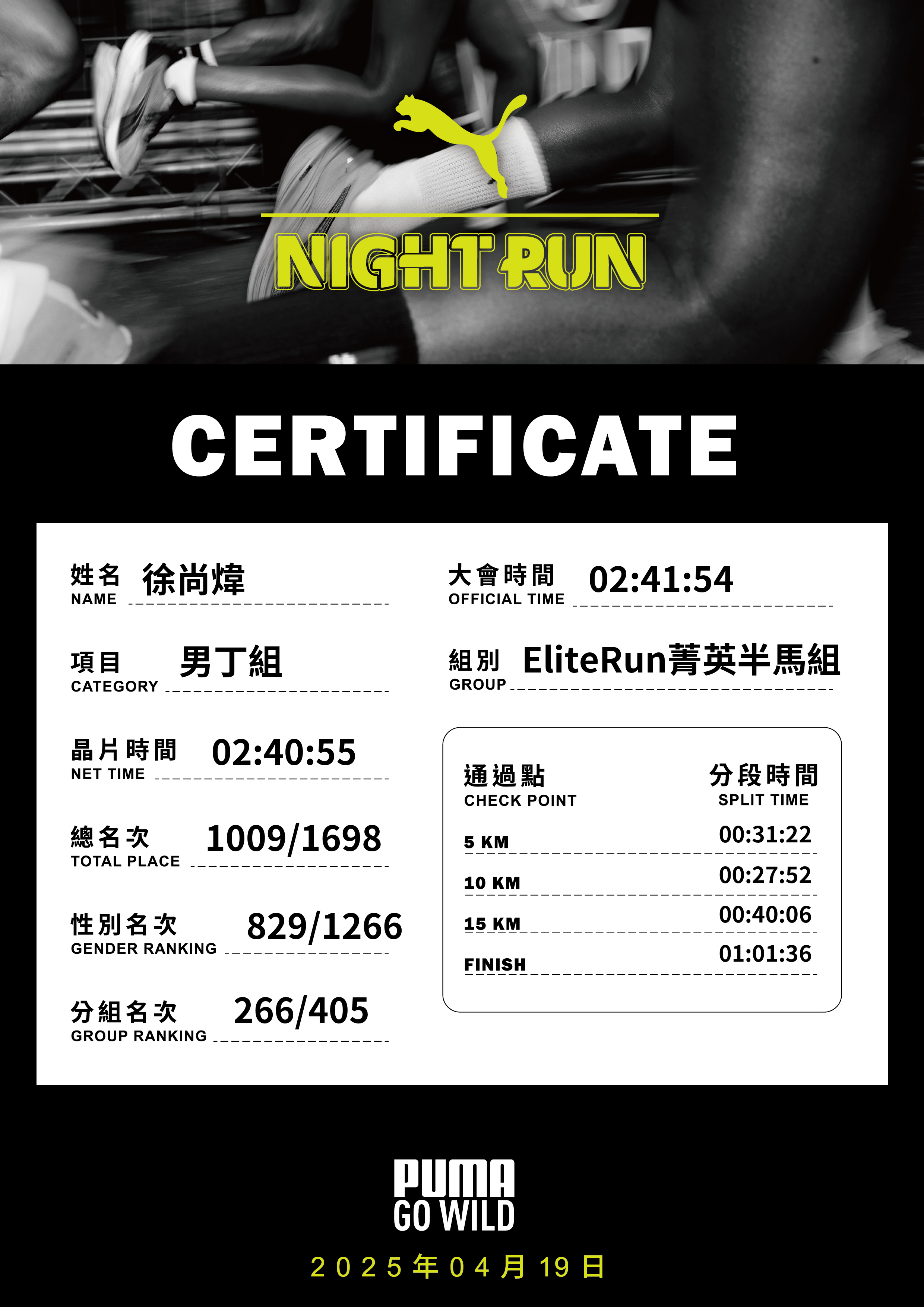 大會成績 Official Time