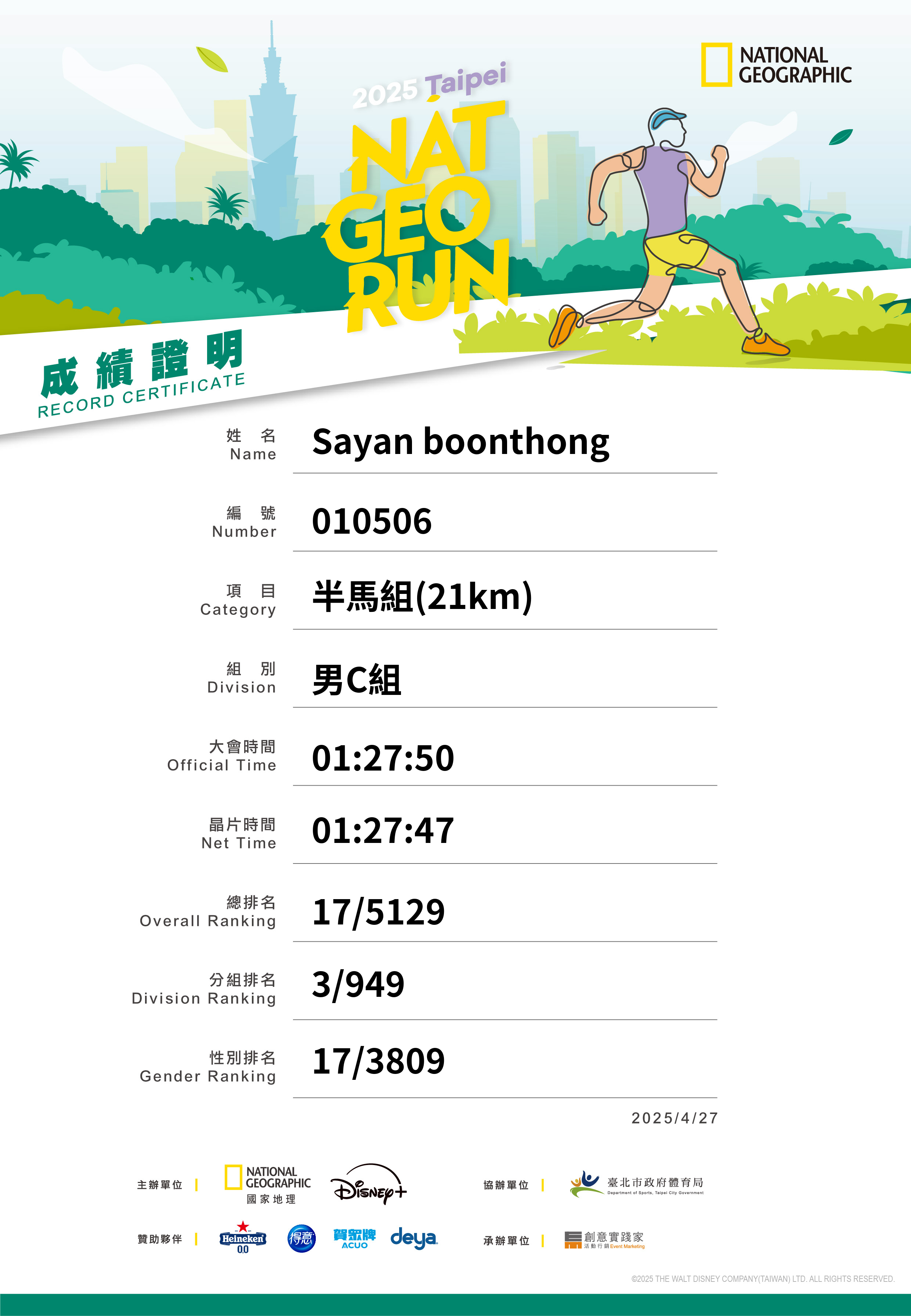 大會成績 Official Time