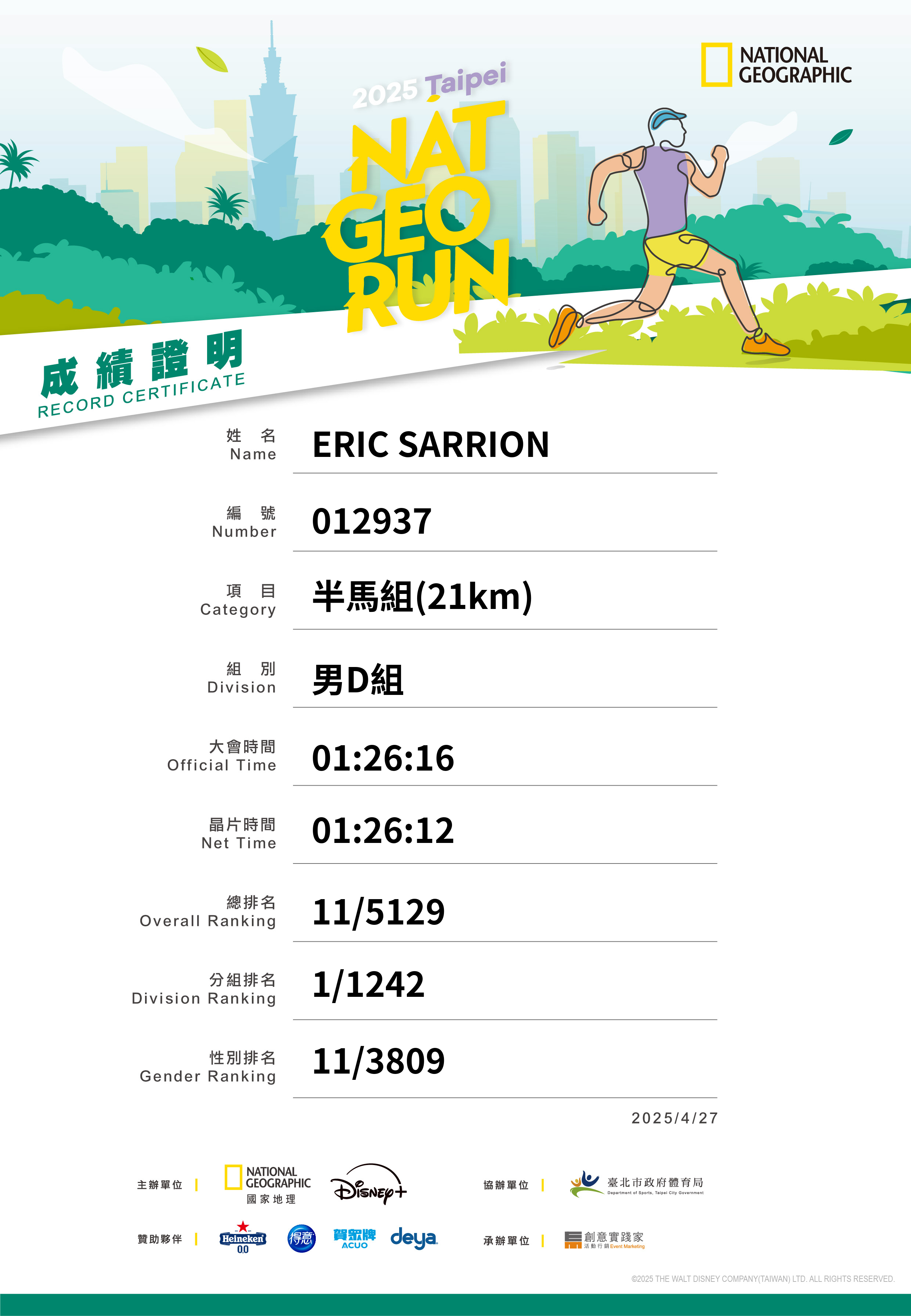 大會成績 Official Time