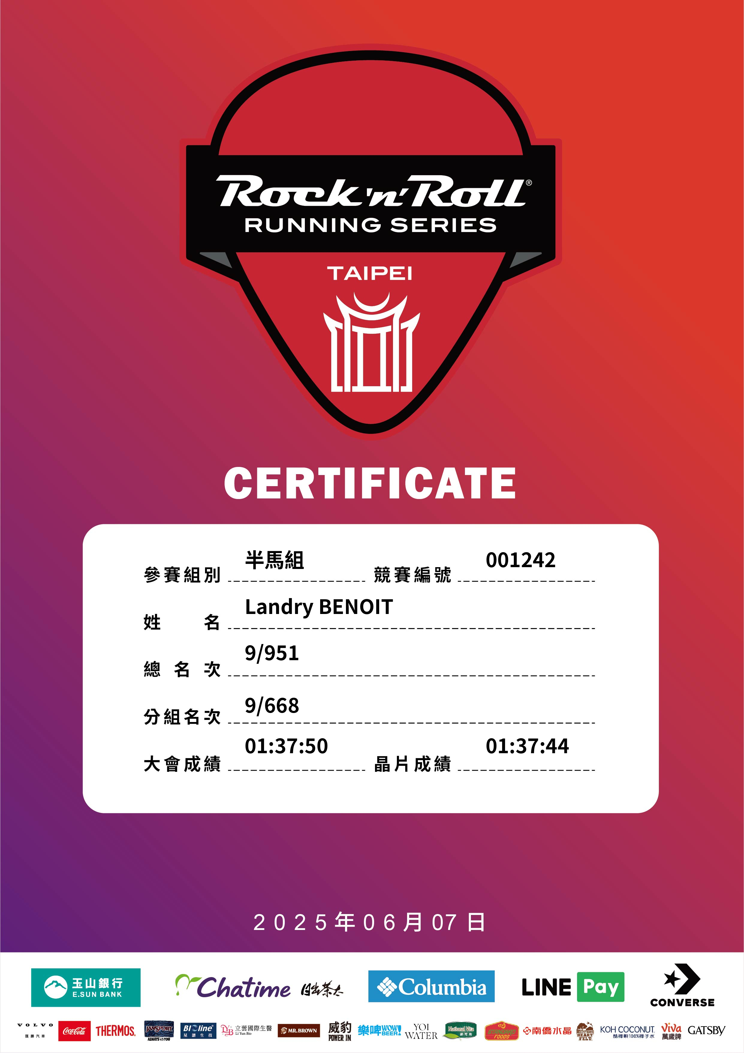 大會成績 Official Time