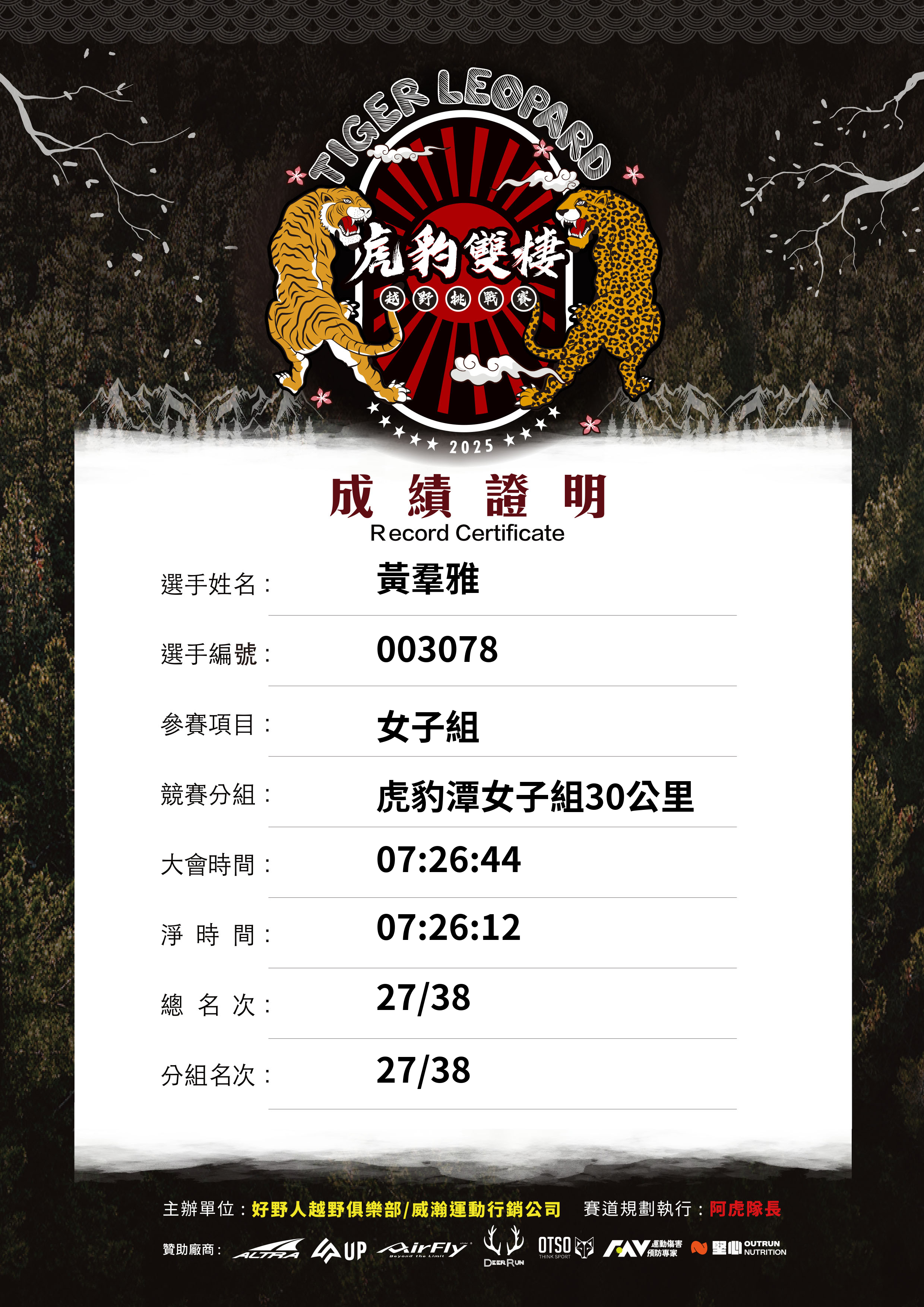 大會成績 Official Time