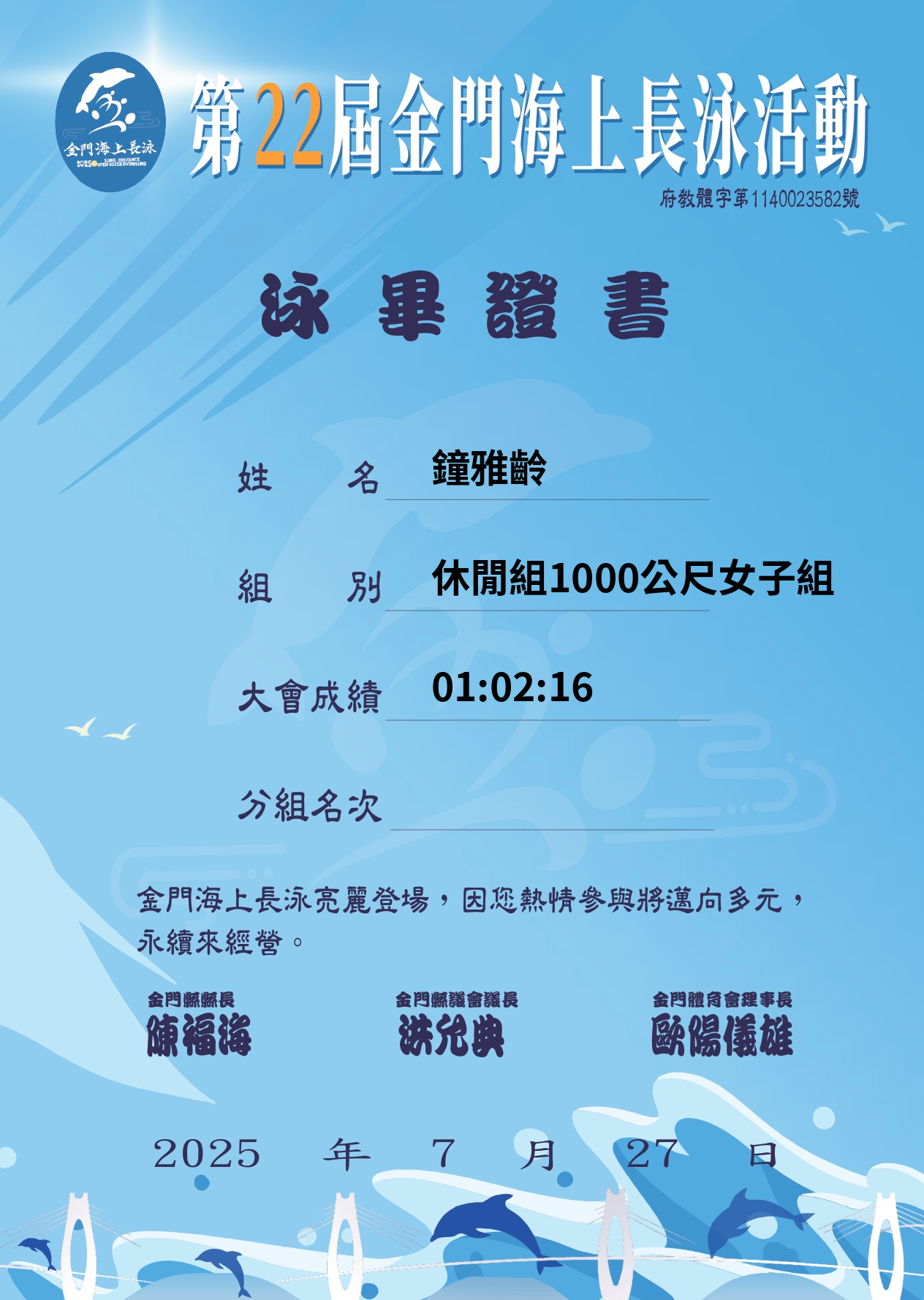 大會成績 Official Time