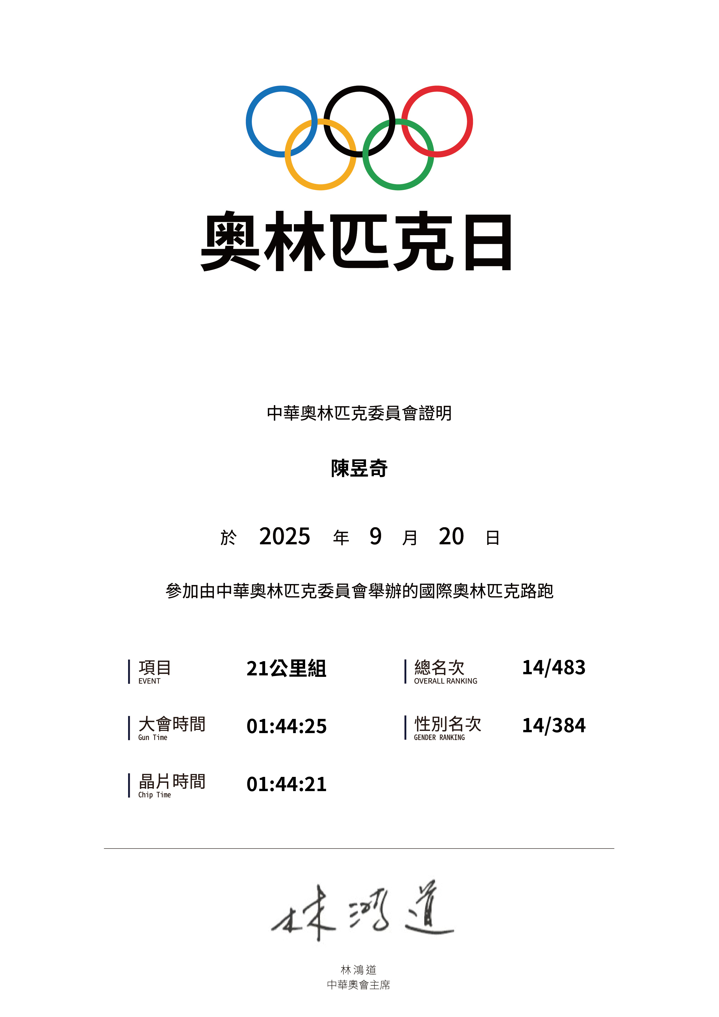 大會成績 Official Time