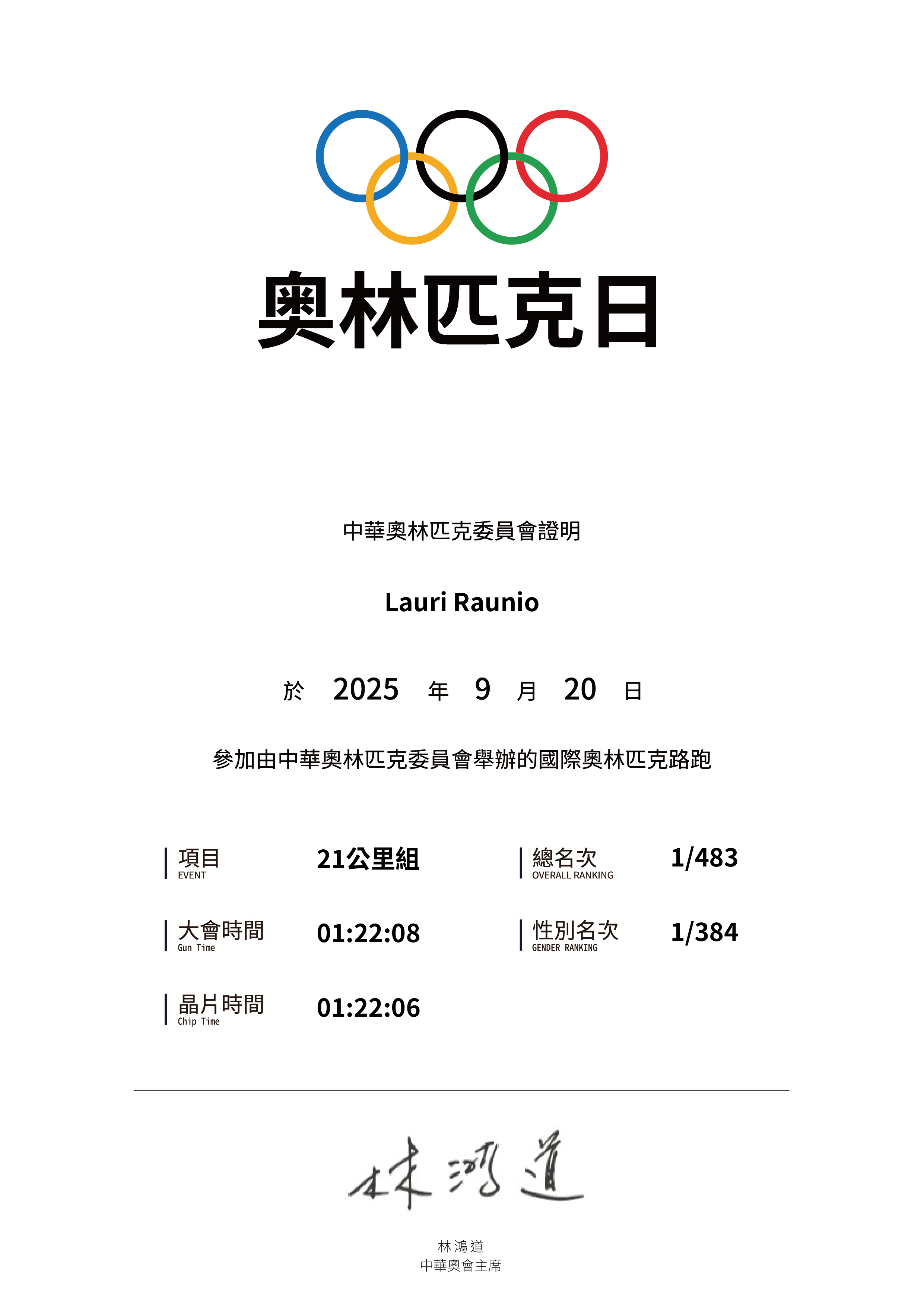 大會成績 Official Time