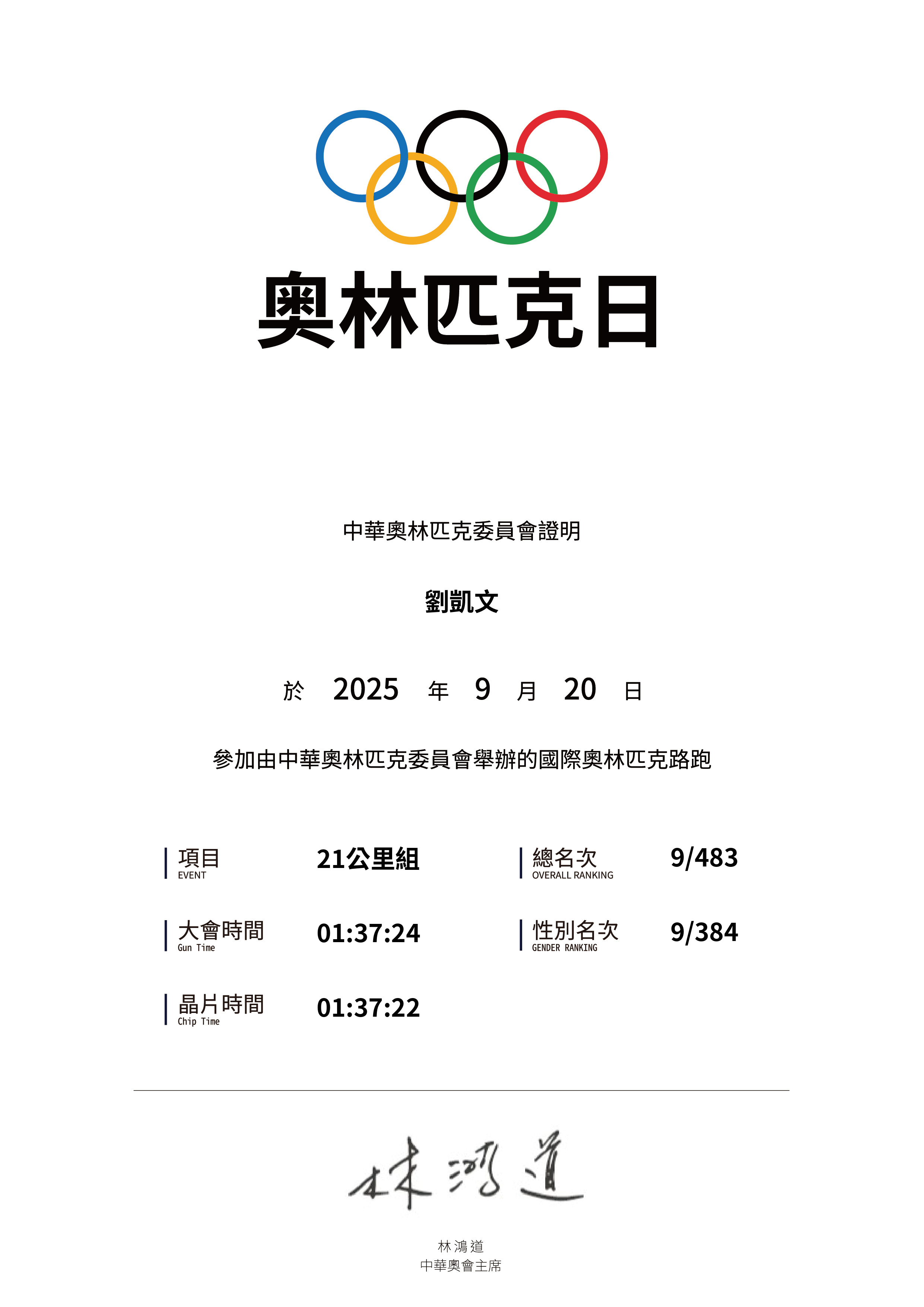 大會成績 Official Time