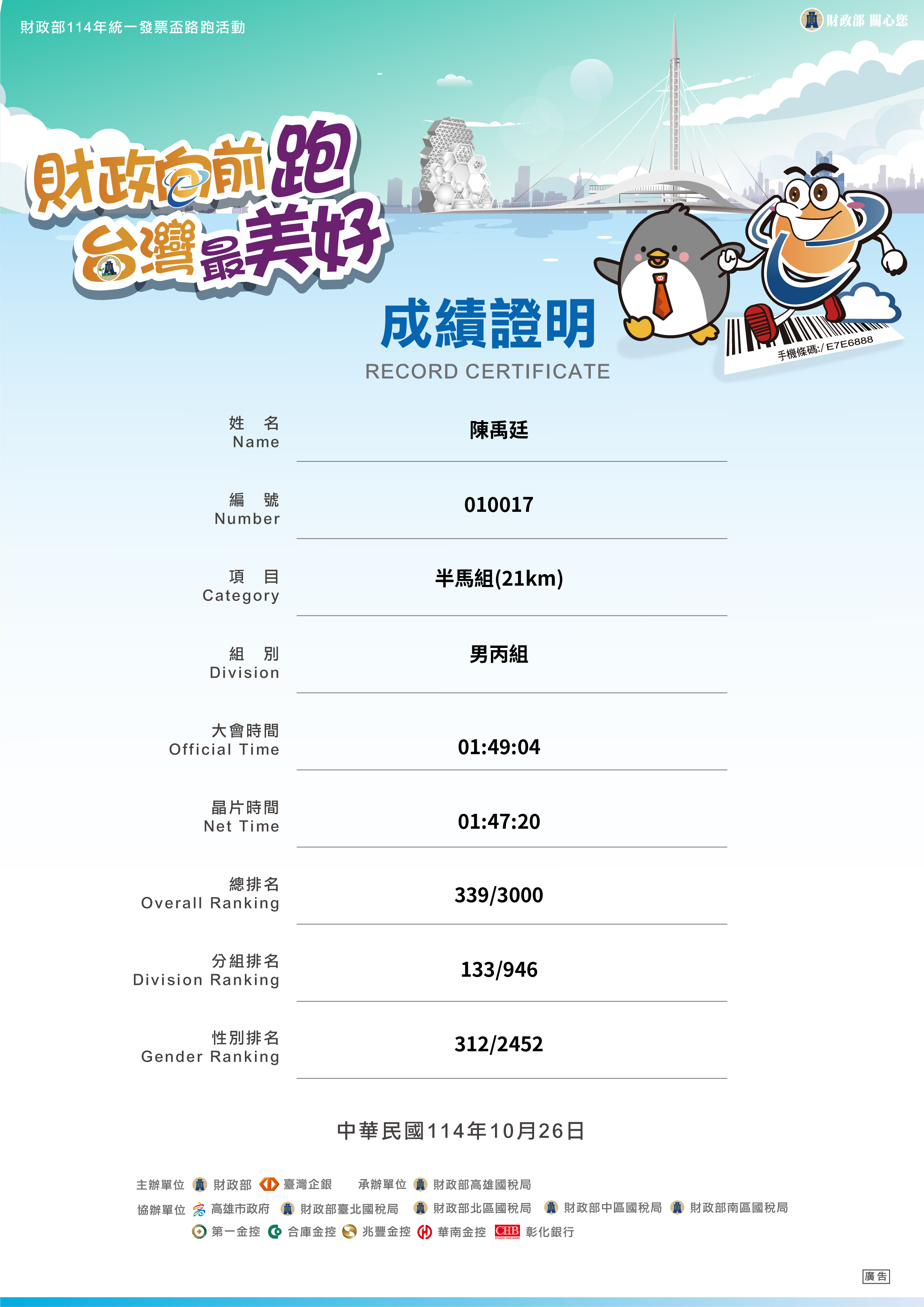 大會成績 Official Time