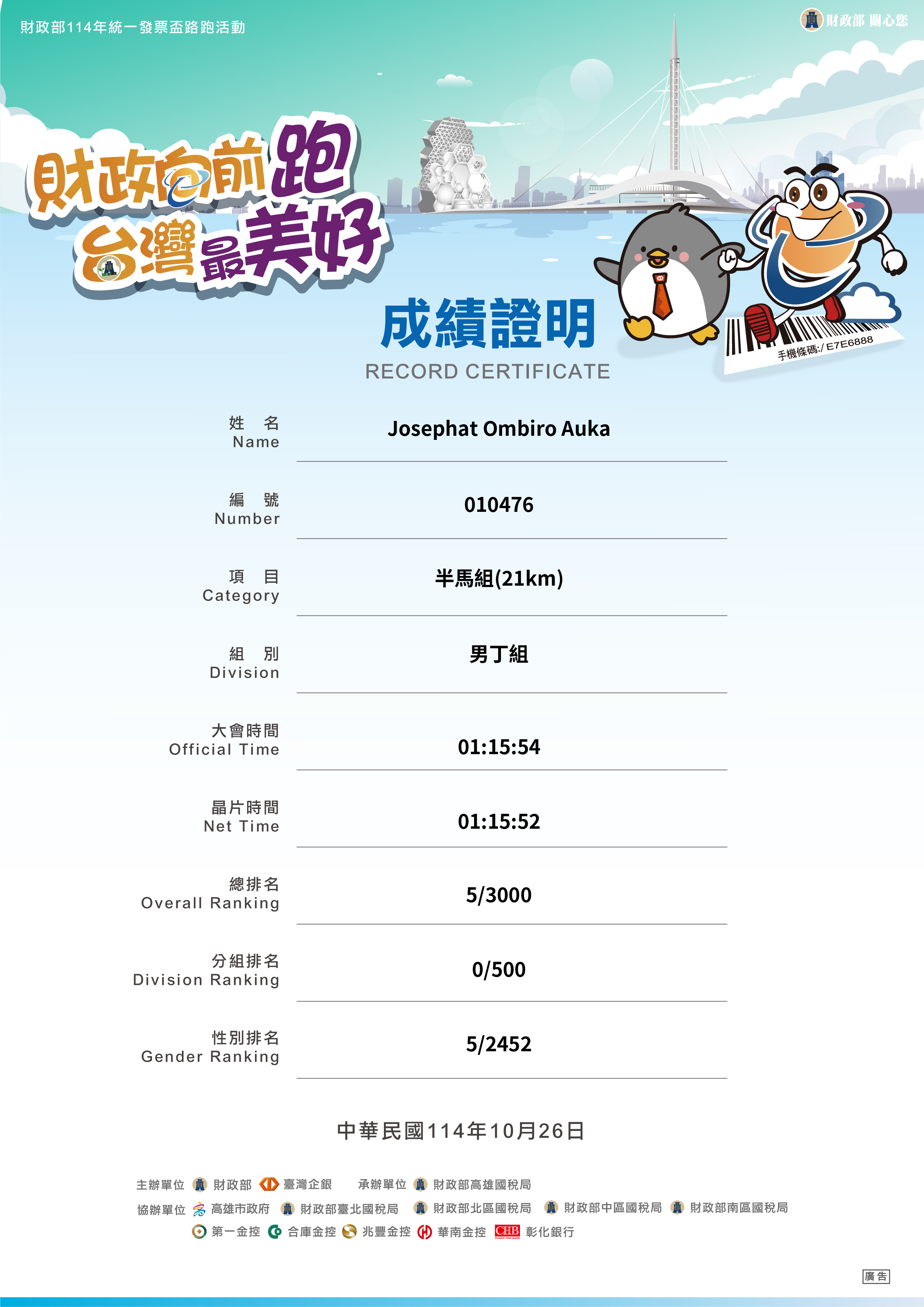 大會成績 Official Time