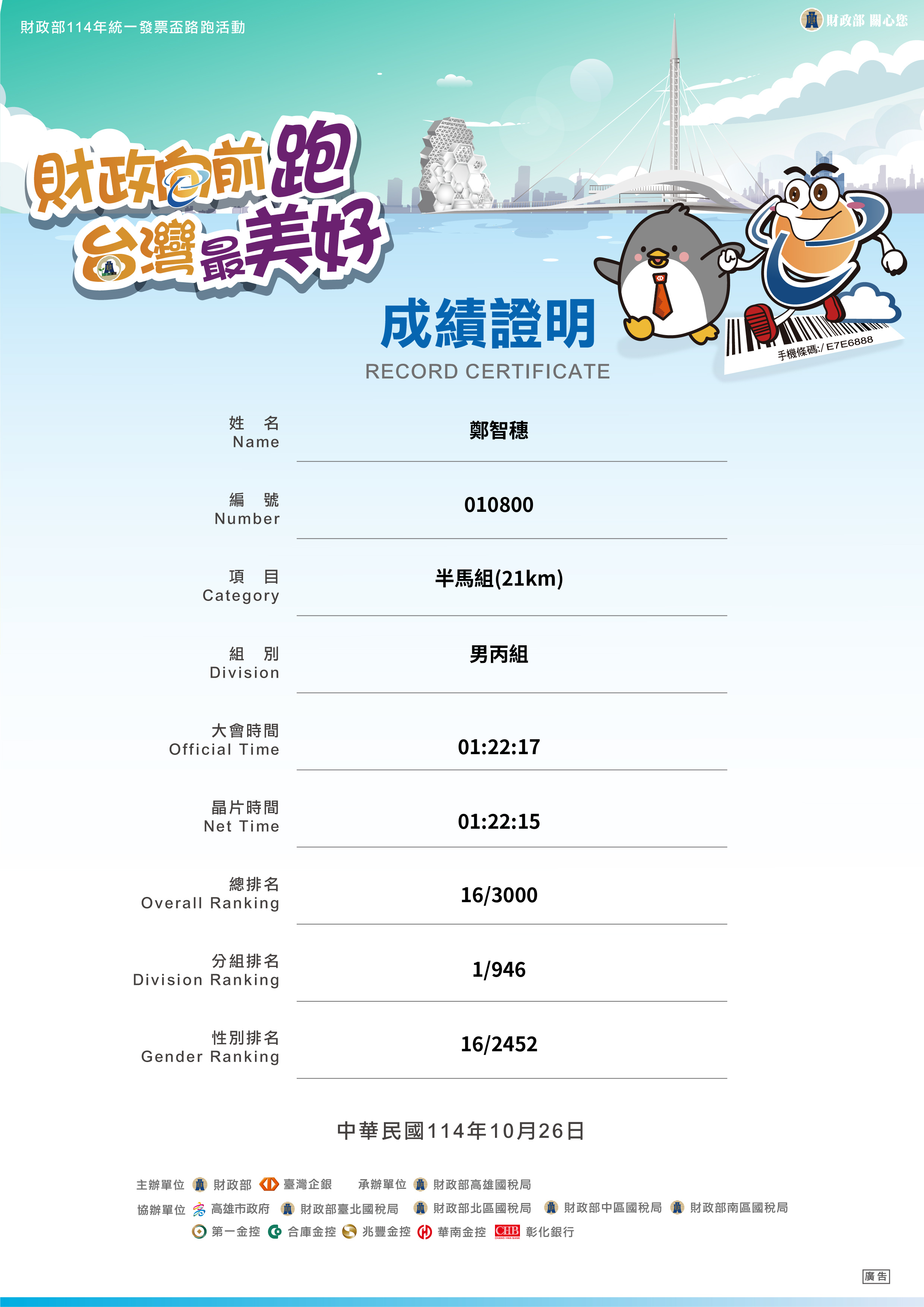 大會成績 Official Time