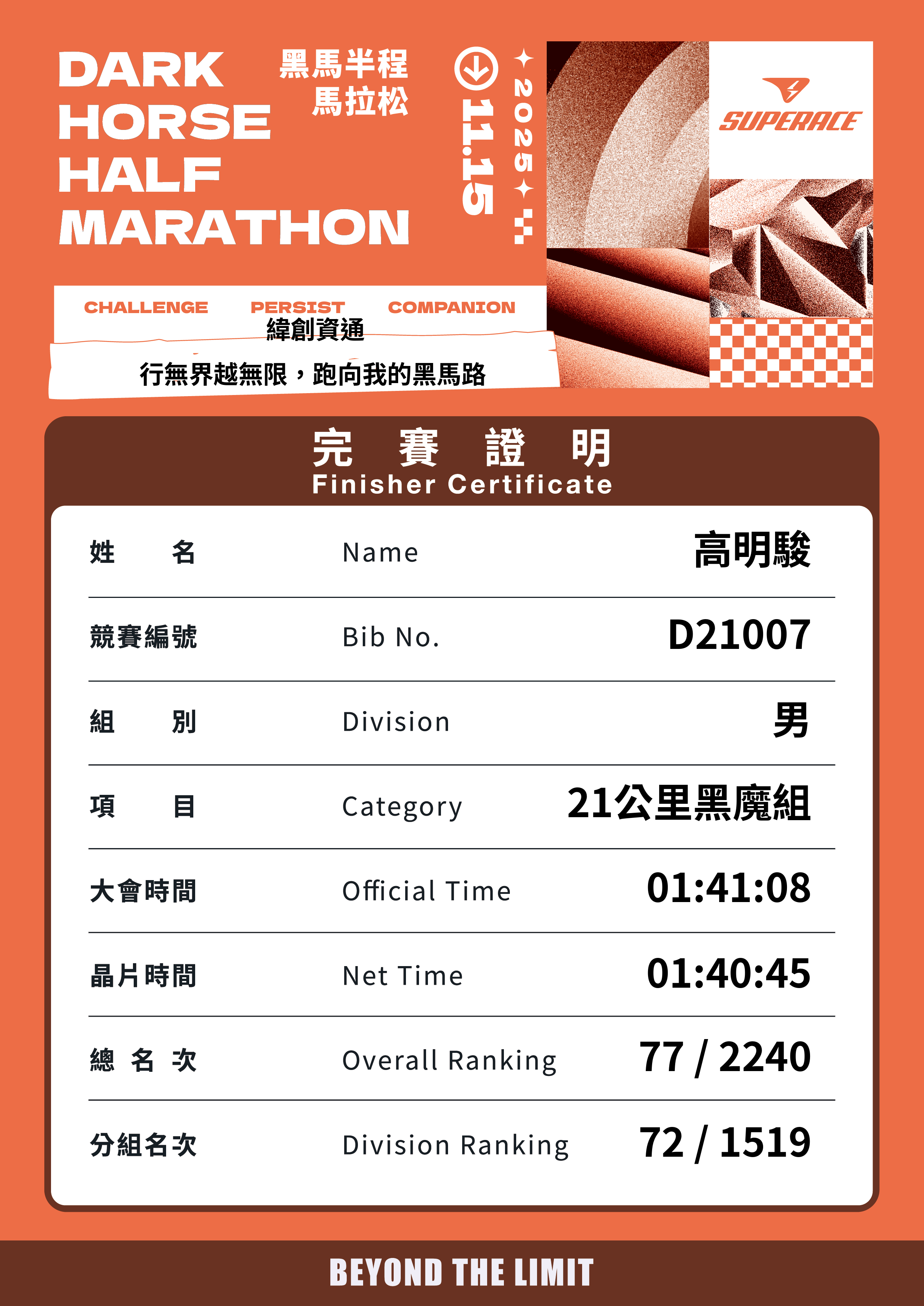 大會成績 Official Time
