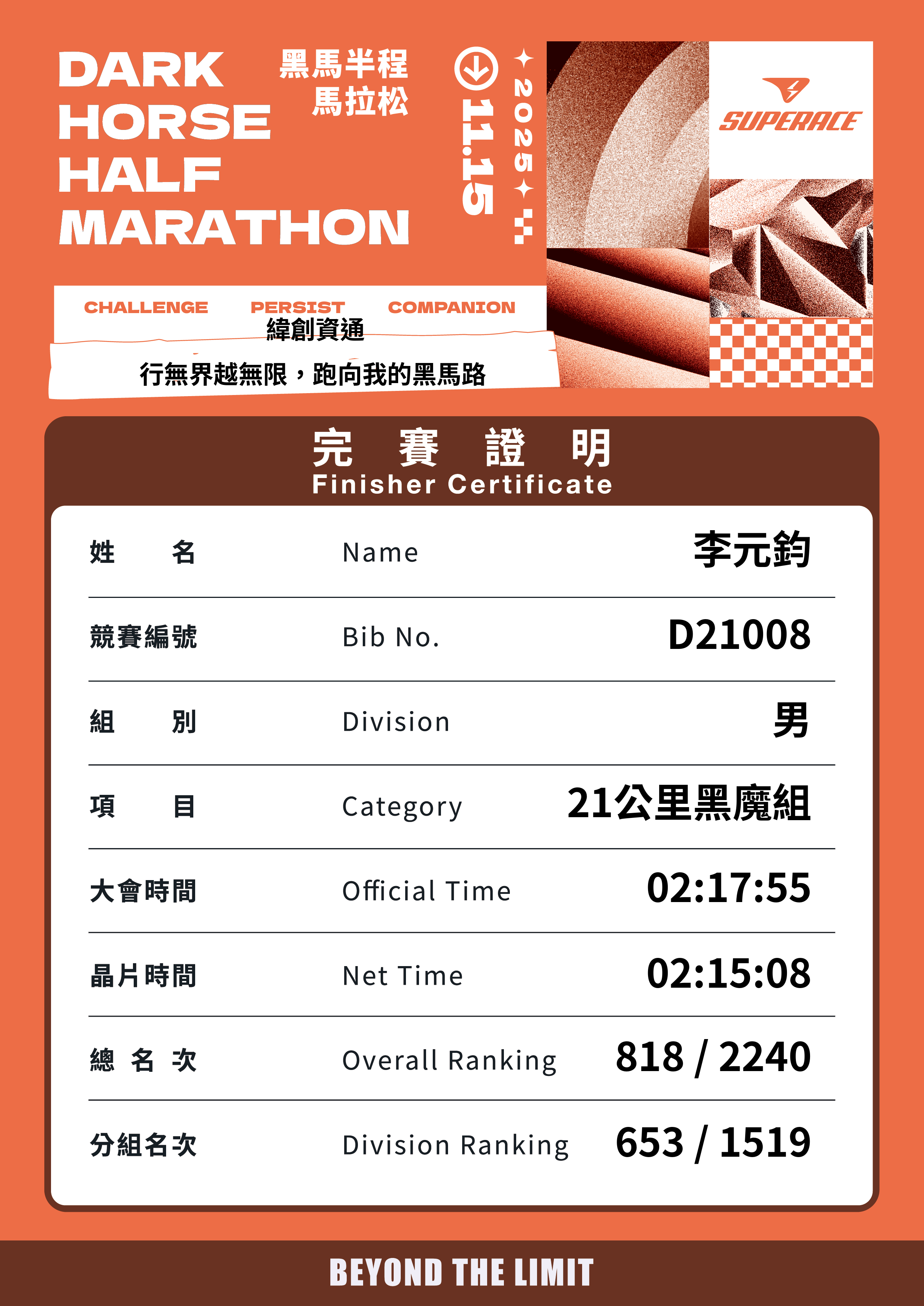 大會成績 Official Time
