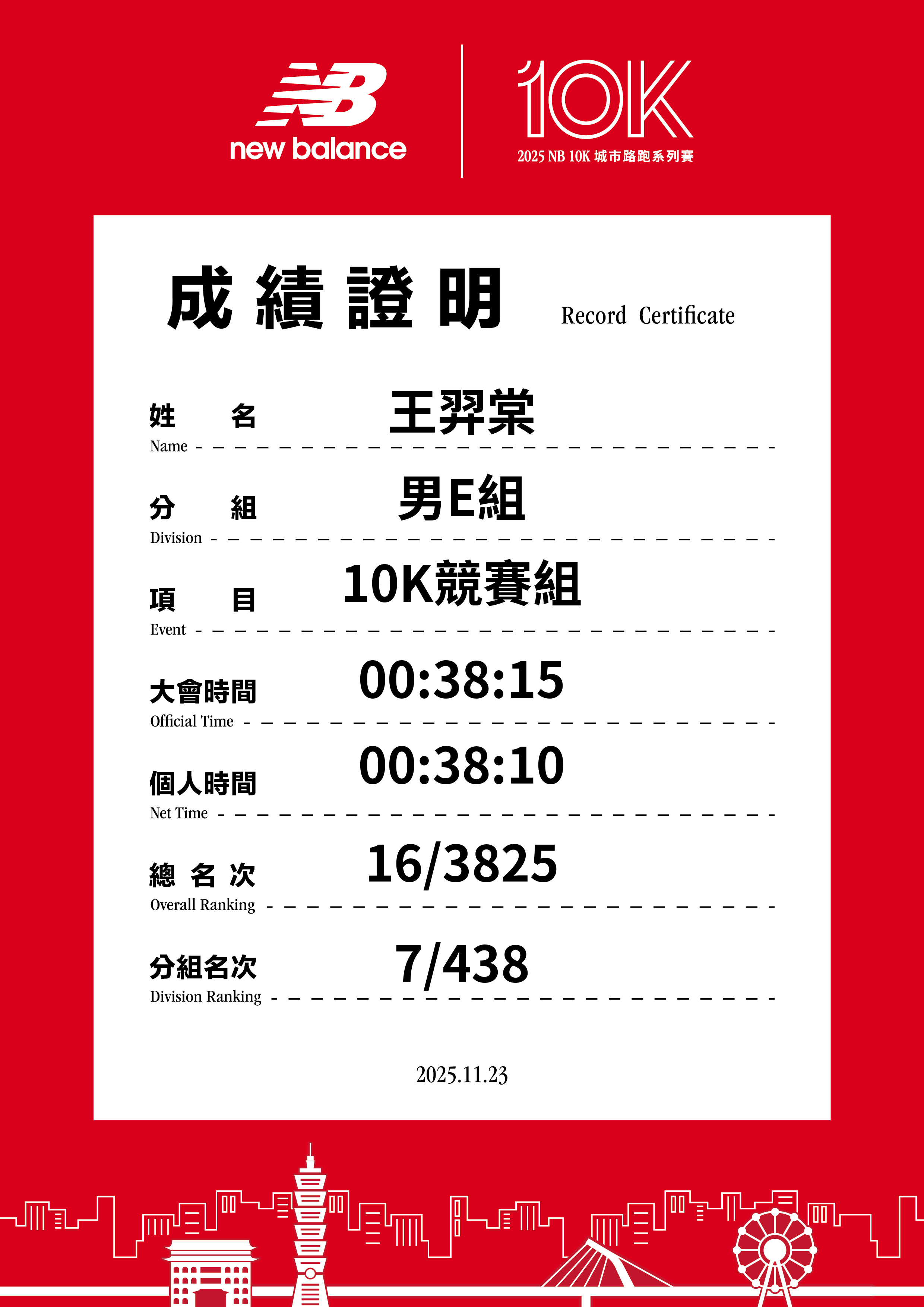 大會成績 Official Time