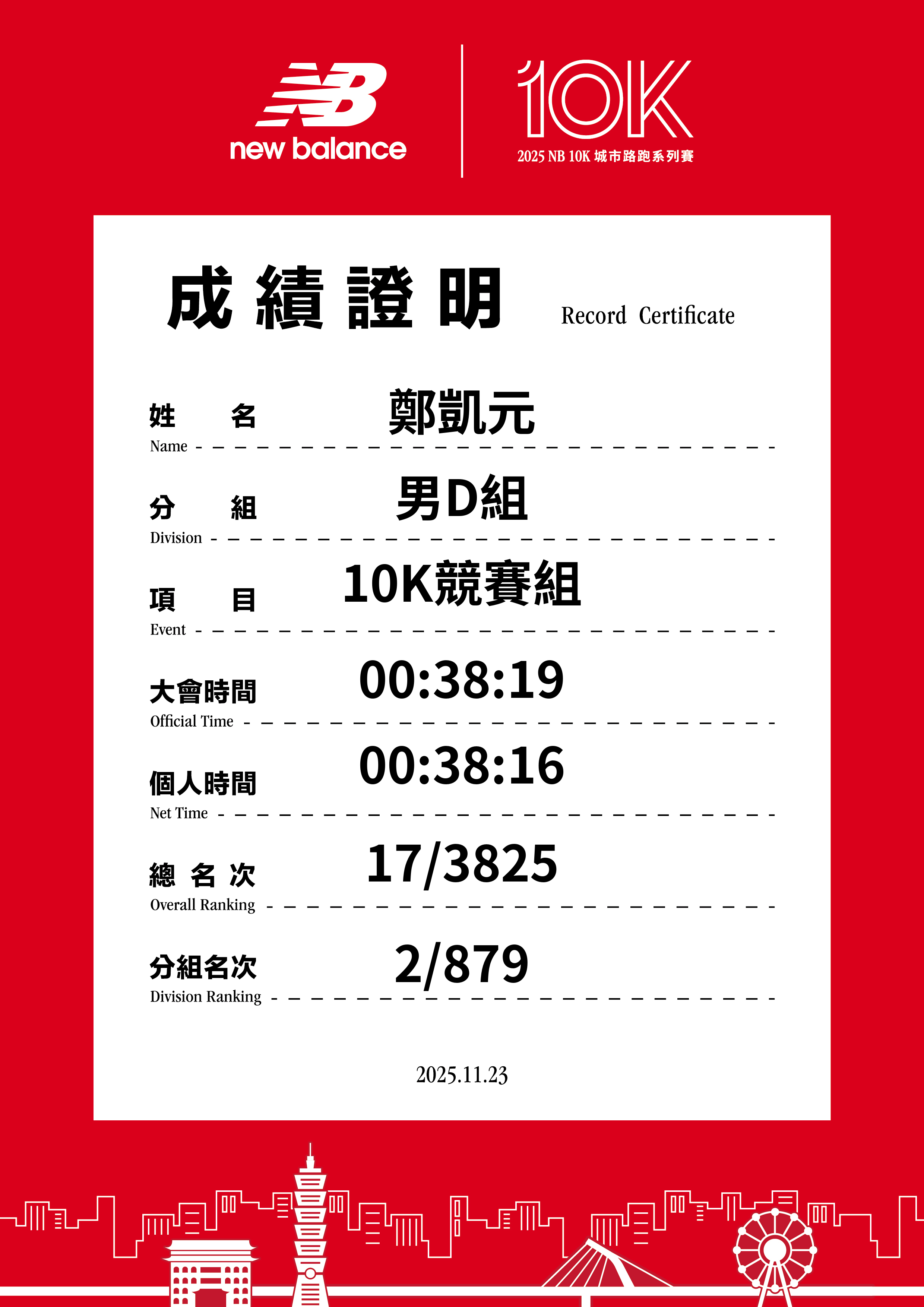 大會成績 Official Time