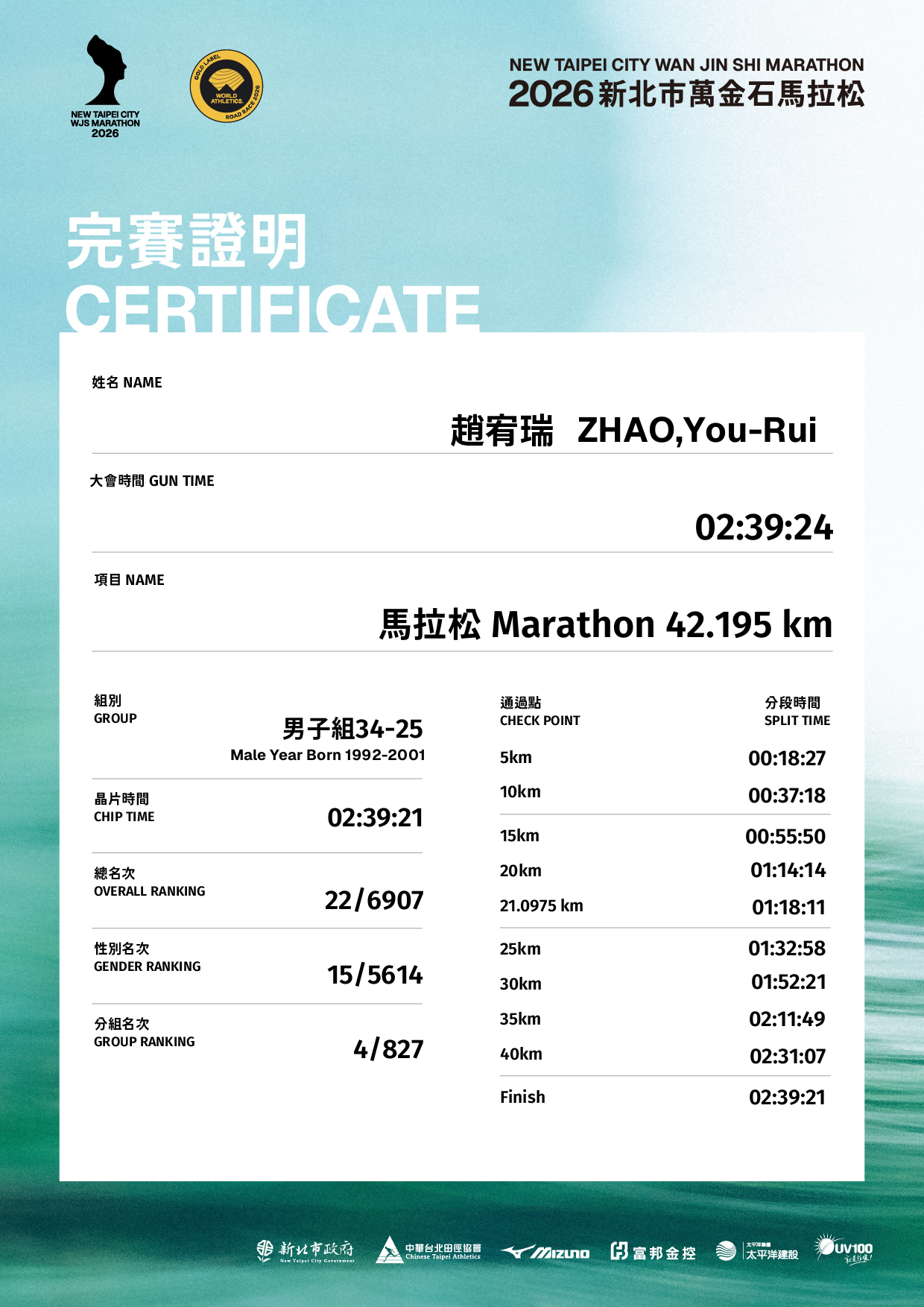 • 即時成績排名僅供參考,正式成績排名應以主辦單位公告為準。