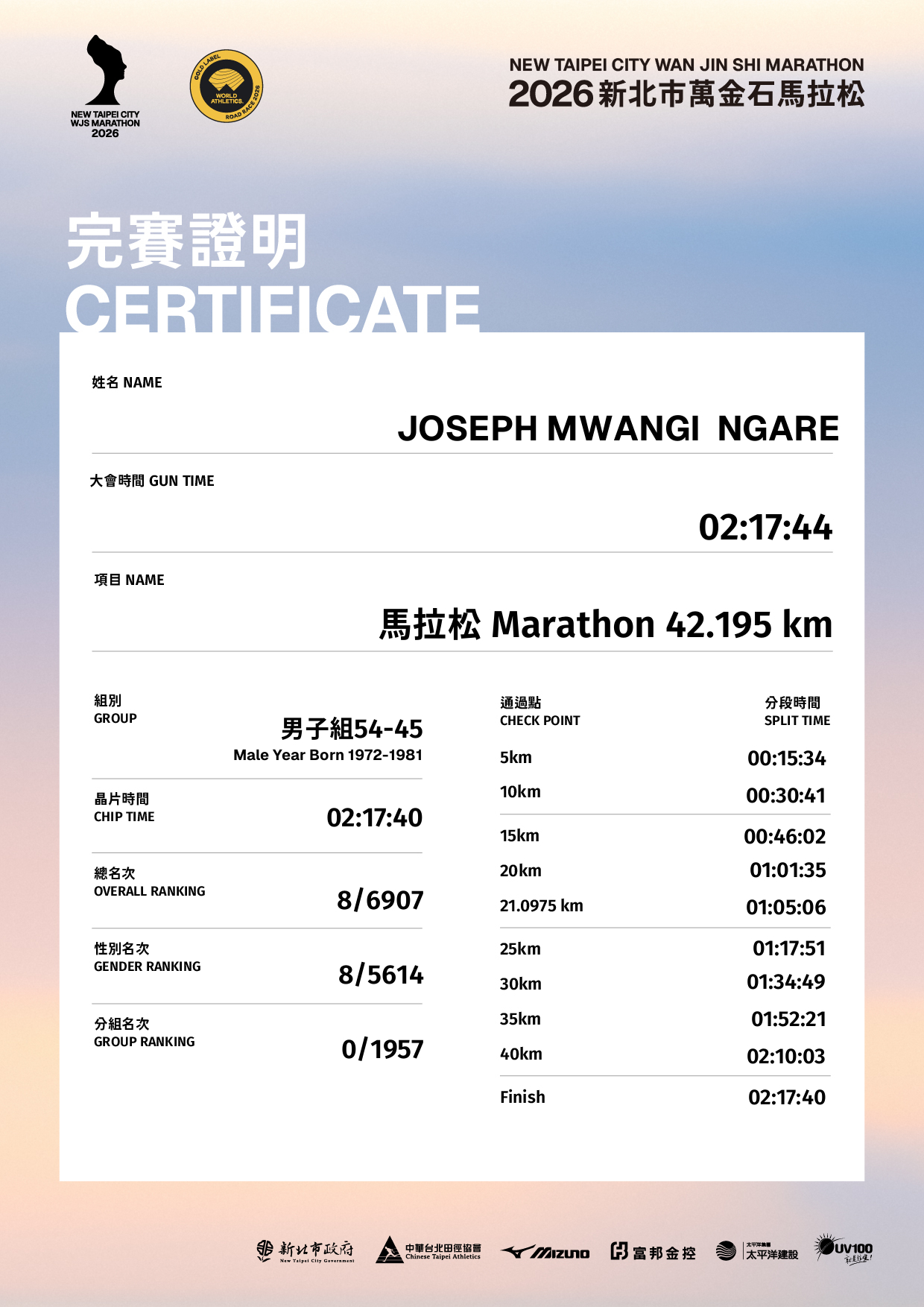 大會成績 Official Time