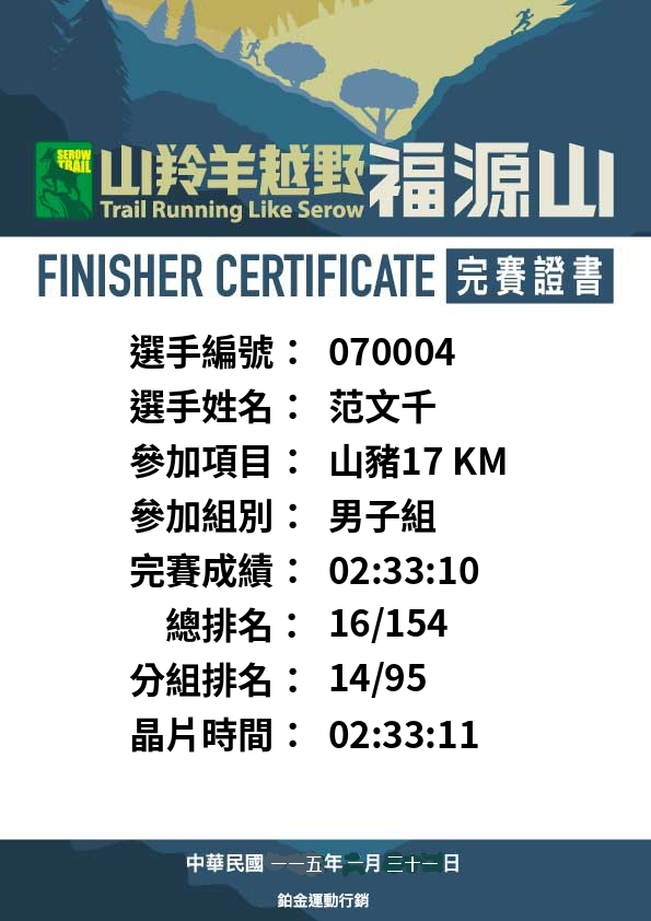 大會成績 Official Time