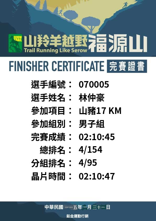 大會成績 Official Time