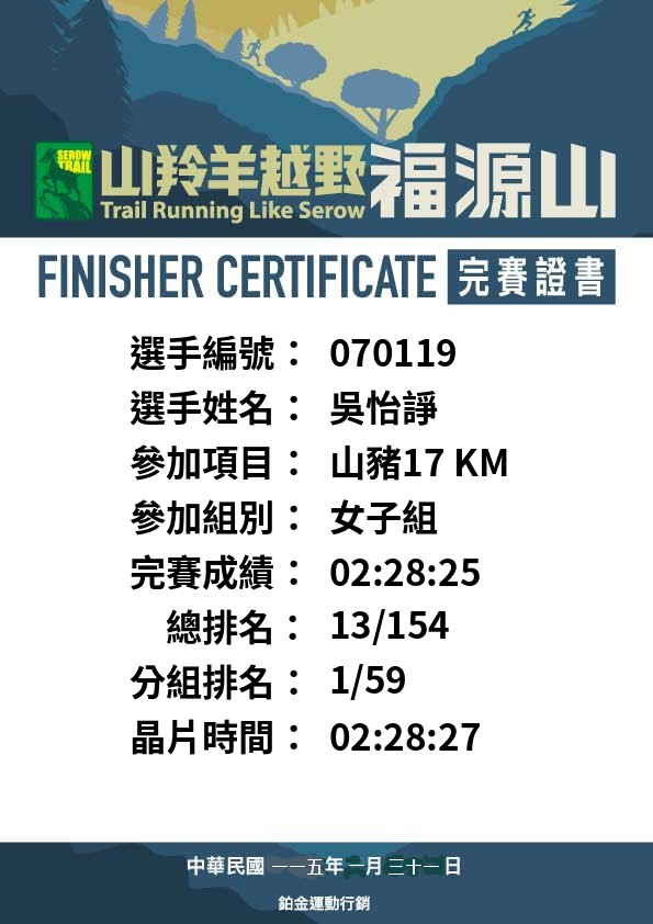 大會成績 Official Time