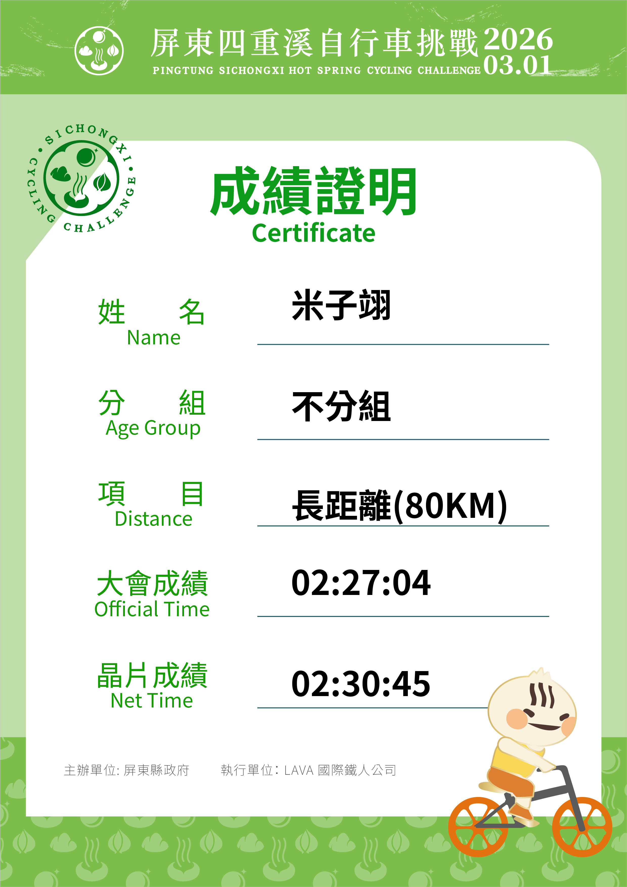大會成績 Official Time