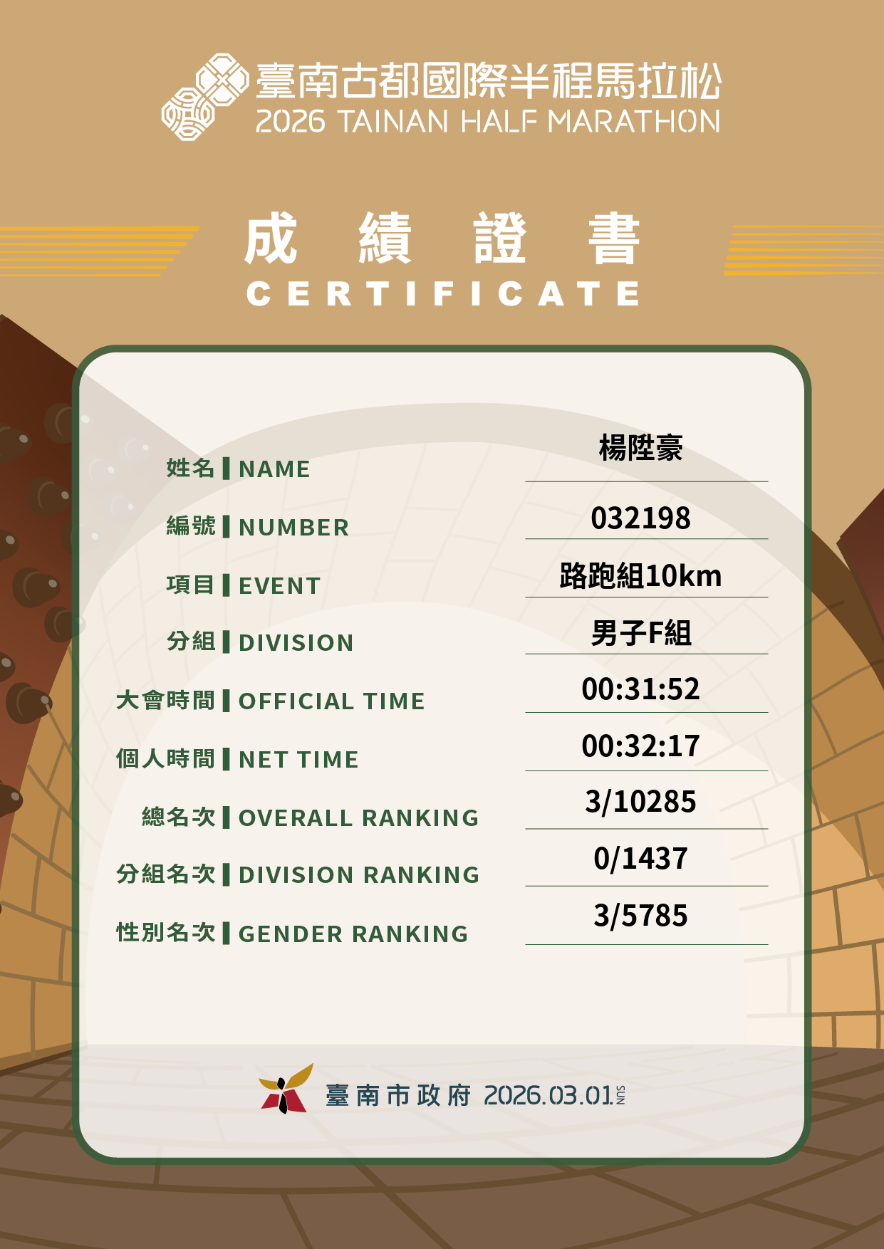 大會成績 Official Time