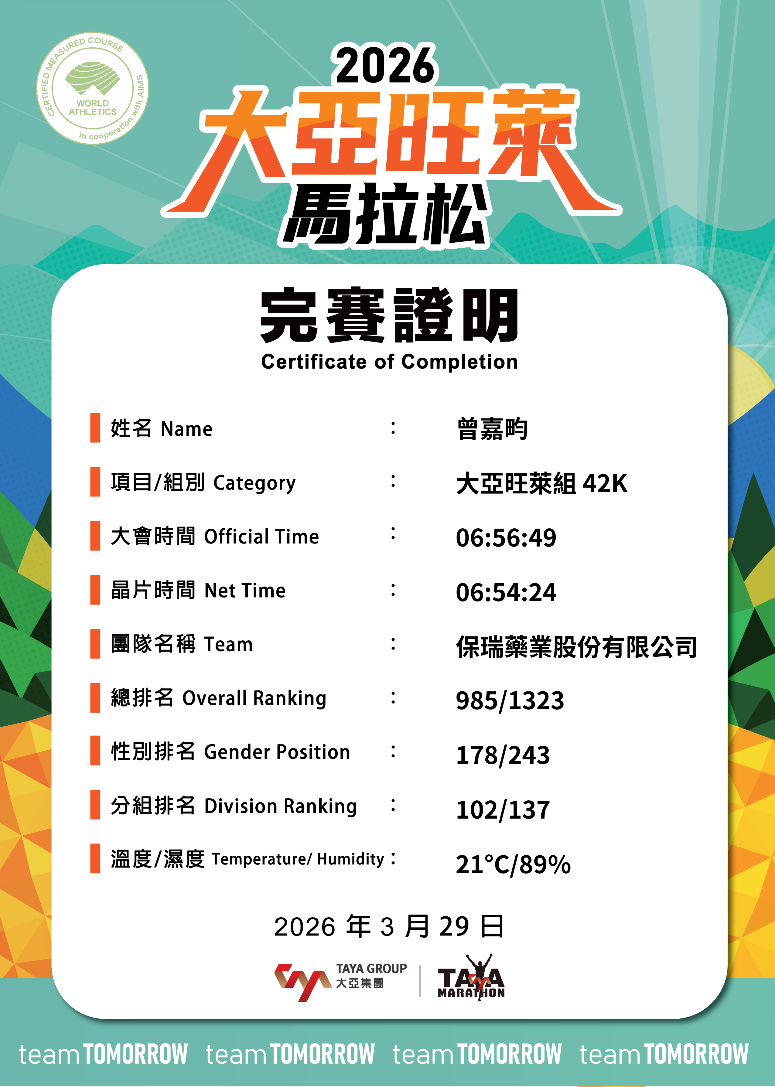 大會成績 Official Time