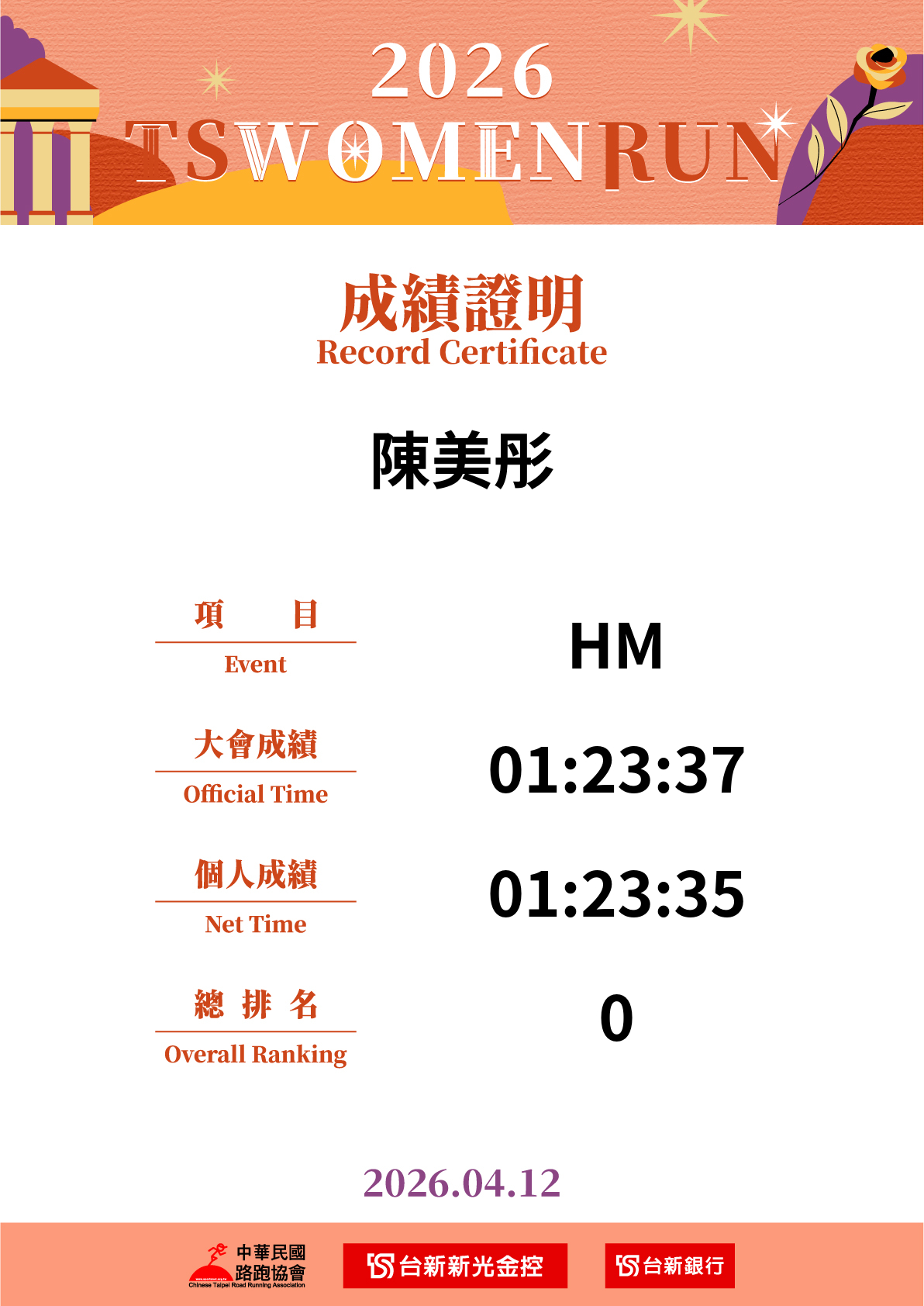 大會成績 Official Time