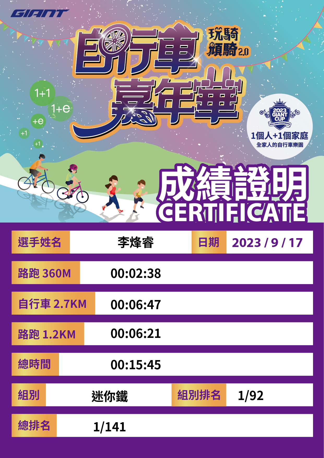 大會成績 Official Time