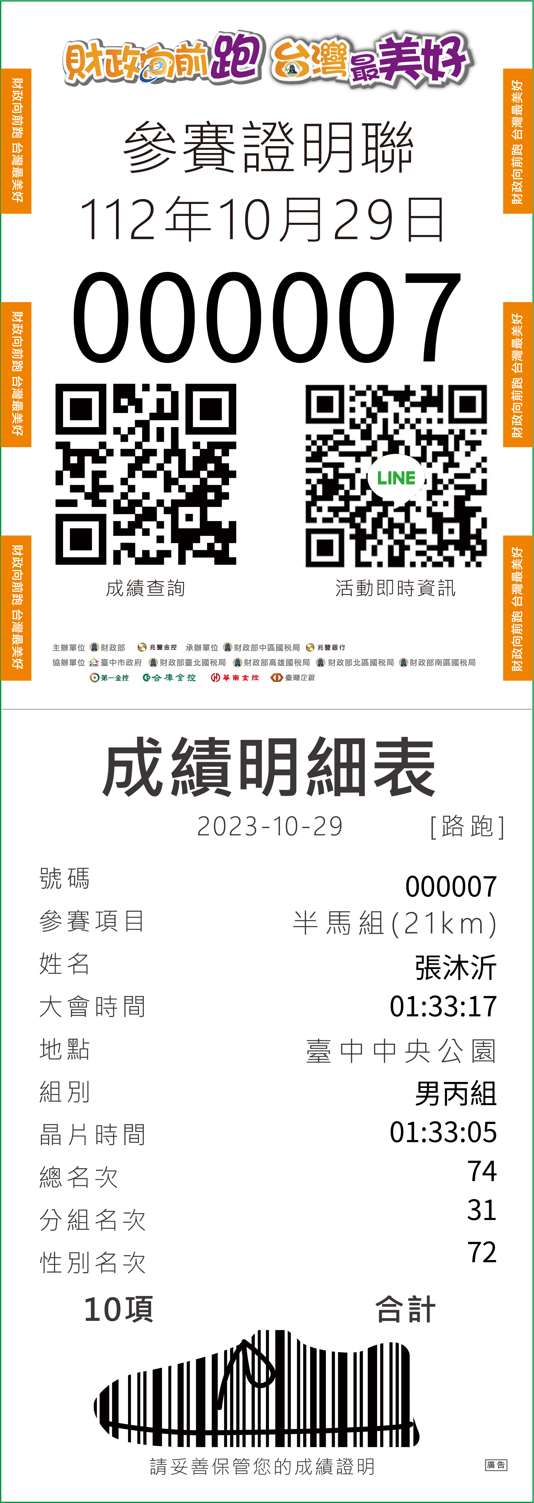 大會成績 Official Time